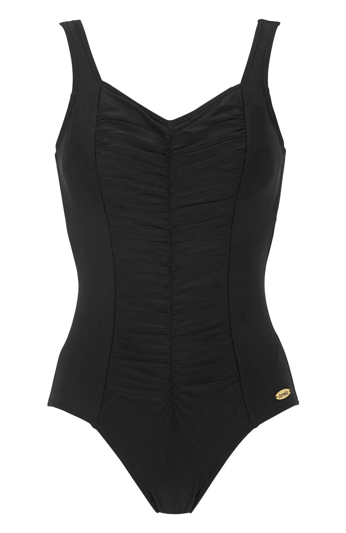 Baddräkt Carole med mjukt vadderad bh. Baddräkten har drapering över magen. Baddräkten har en shapingeffekt framtill vilket gör att den ger ett slimmande resultat.