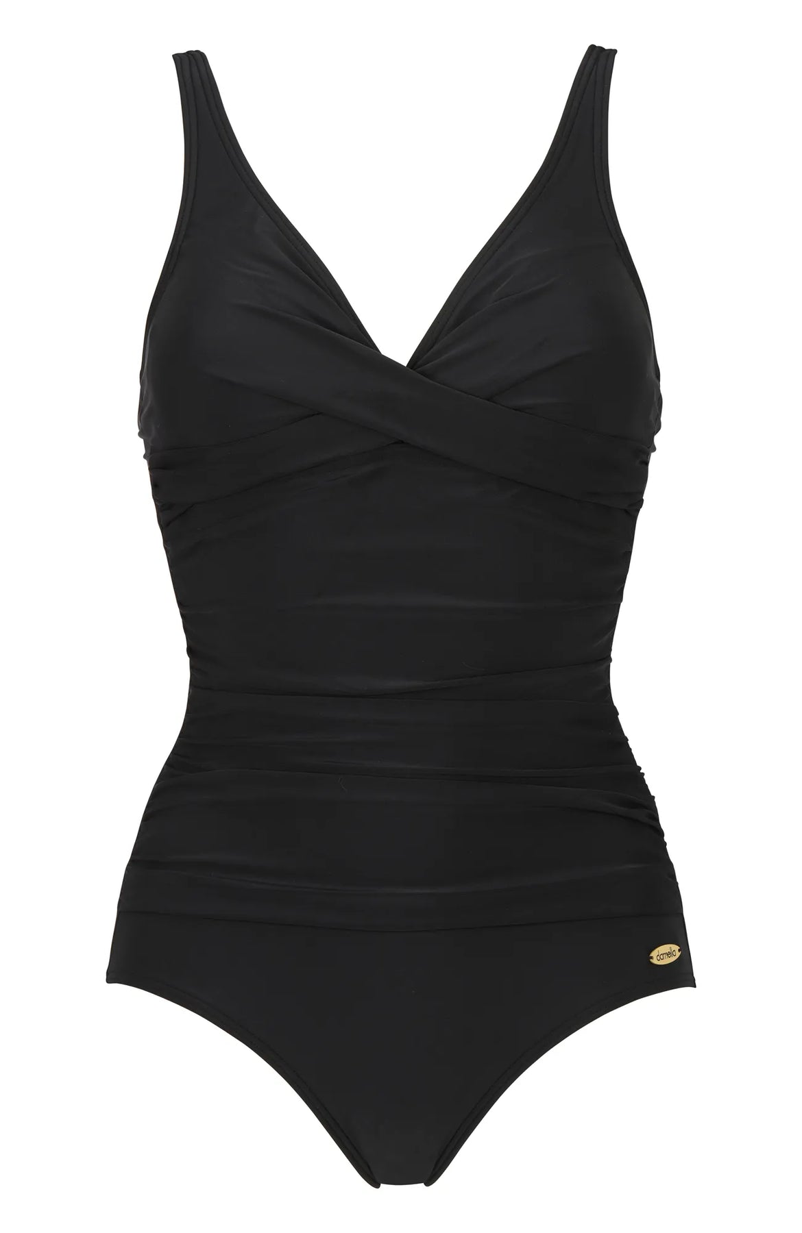 Upplev strandens charm med vår baddräkt, komplett med en mjukt vadderad bh för optimalt stöd. Draperingen och omlottdetaljerna framtill ger en sofistikerad touch medan de justerbara axelbanden säkerställer en bekväm passform.