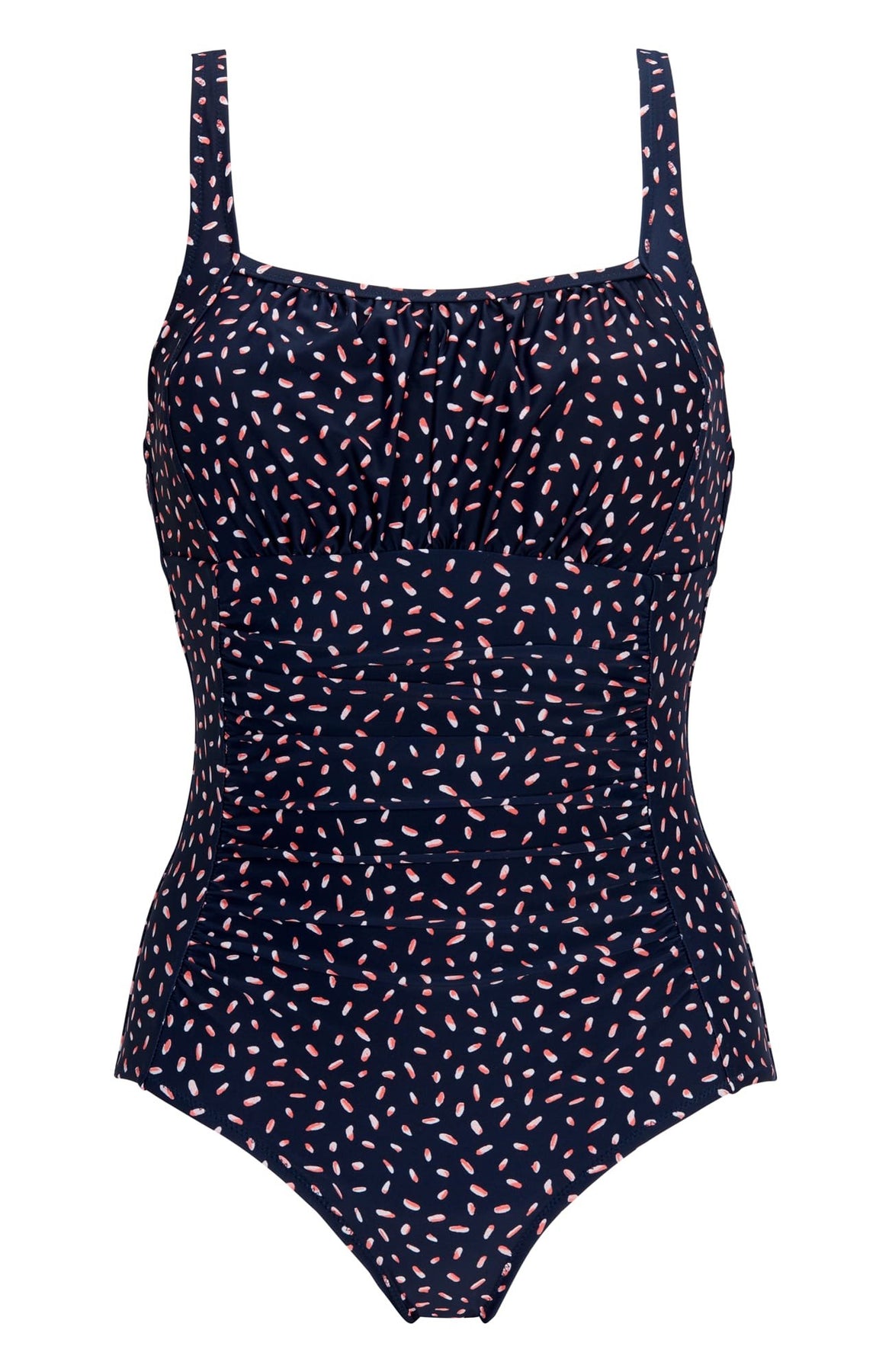 Utforska komforten och stilen med vår baddräkt som har bystsupport och mjuk vaddering. Draperingen över bysten och framtill skapar en elegant touch medan de justerbara axelbanden möjliggör en perfekt passform.