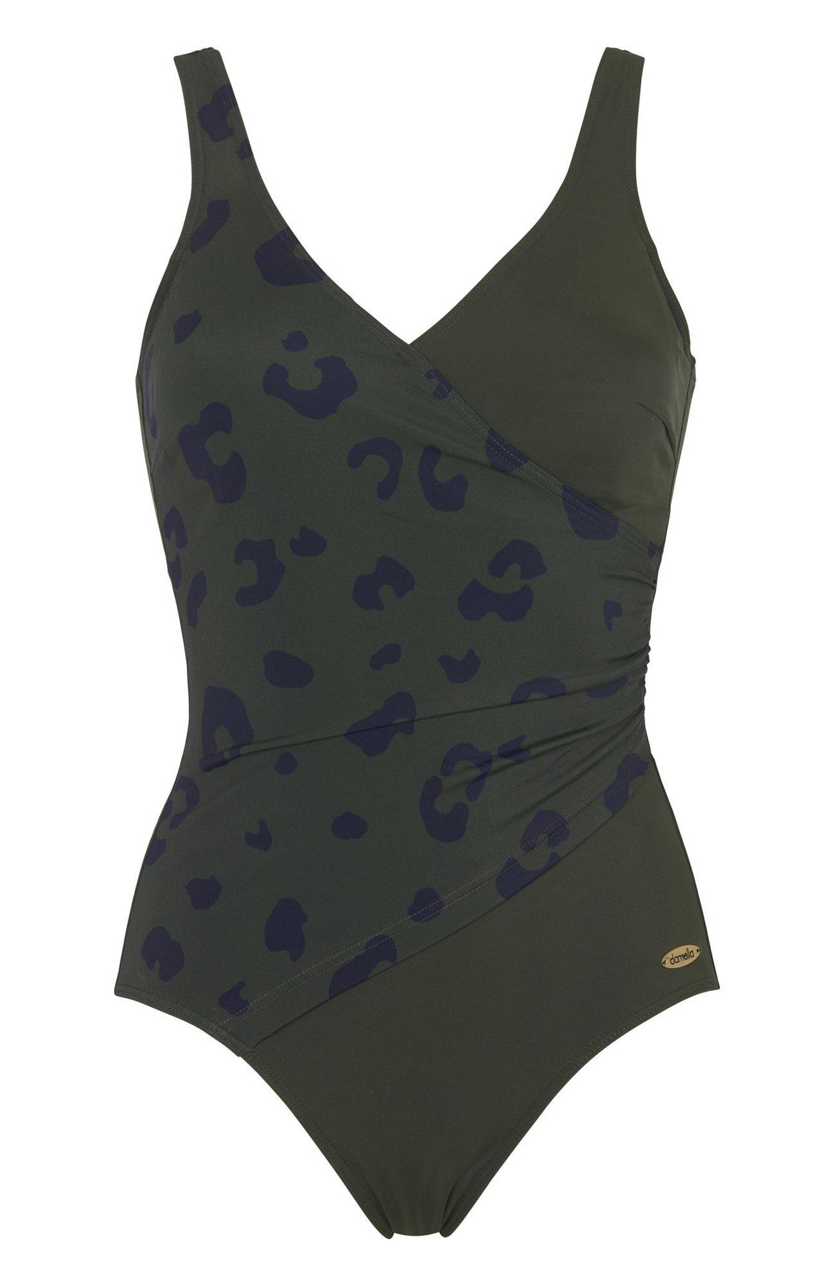 Upptäck vår baddräkt Julia med en mjukt vadderad bh inuti som ger stadigt stöd för bysten. Baddräkten har en draperad omlotteffekt med kontrasterande tyg framtill vilket skapar en elegant och förtjusande look.
