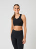 Björn Borg Running High Support-BH för dam är gjord i ett mjukt, återvunnet material med mycket stretch för optimal komfort. Insidan är fodrad med elastisk återvunnen polyester. BH:n har vadderade kupor och axelband som ger stabilt stöd, medan racerback-modellen ger bra rörelsefrihet. Meshmaterial på ryggen förbättrar ventilationen och håller dig sval under träningen. Passformen kan enkelt justeras med ett elastiskt band med logotyp runt bålen.