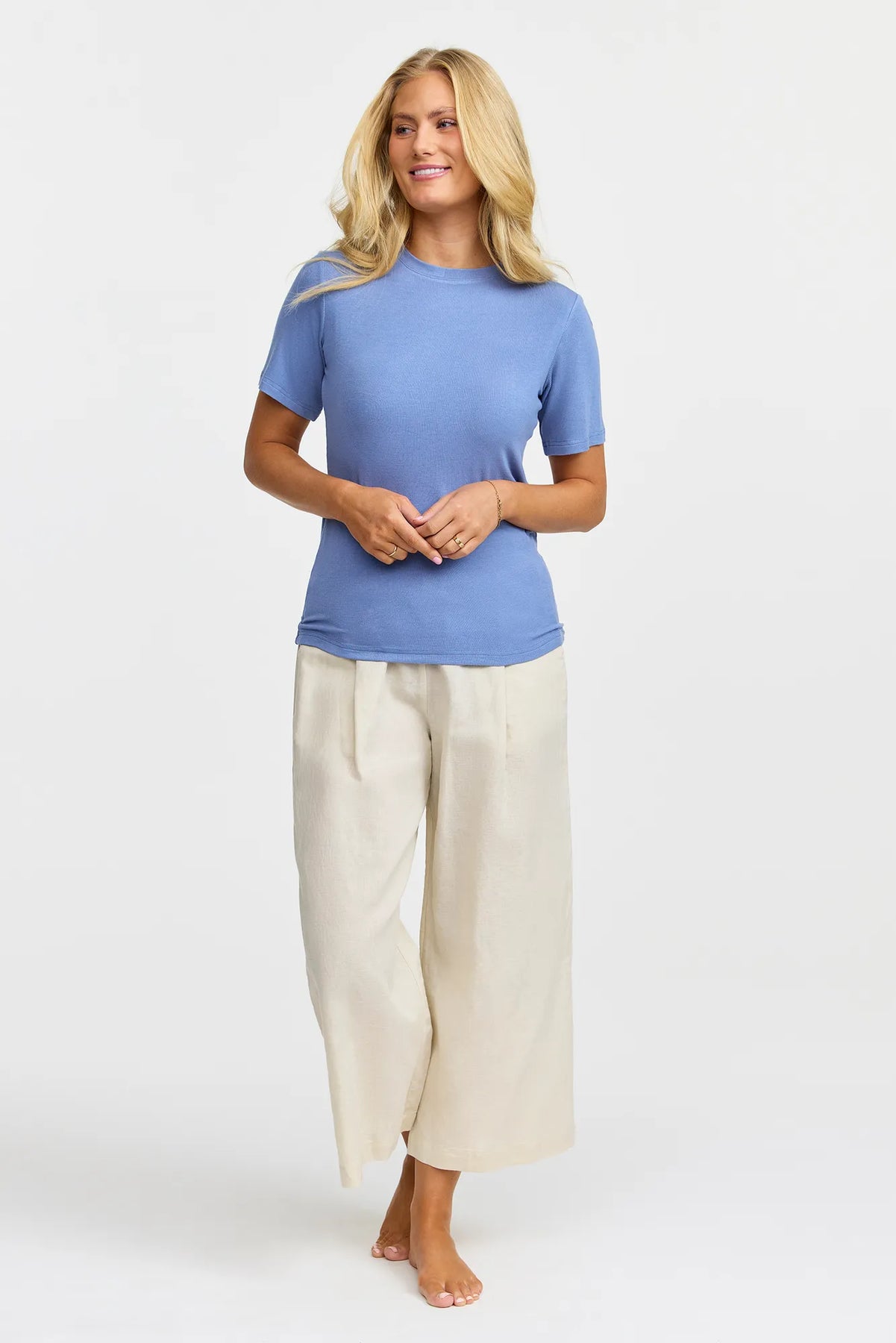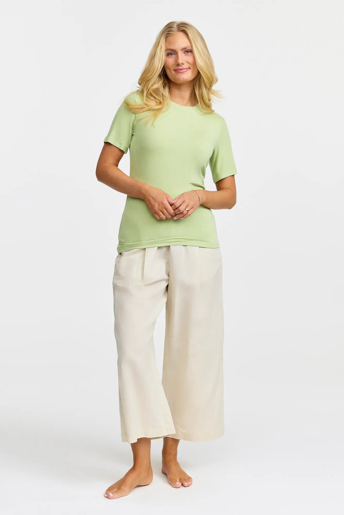 Utforska våra linnebyxor. Designade med stilfulla veck och praktiska framfickor, kombinerar de både tidlös stil och funktionalitet. Den elastiska resåren i midjan baktill ger en bekväm passform och flexibilitet under hela dagen. Perfekta för att skapa en sofistikerad och bekväm look.