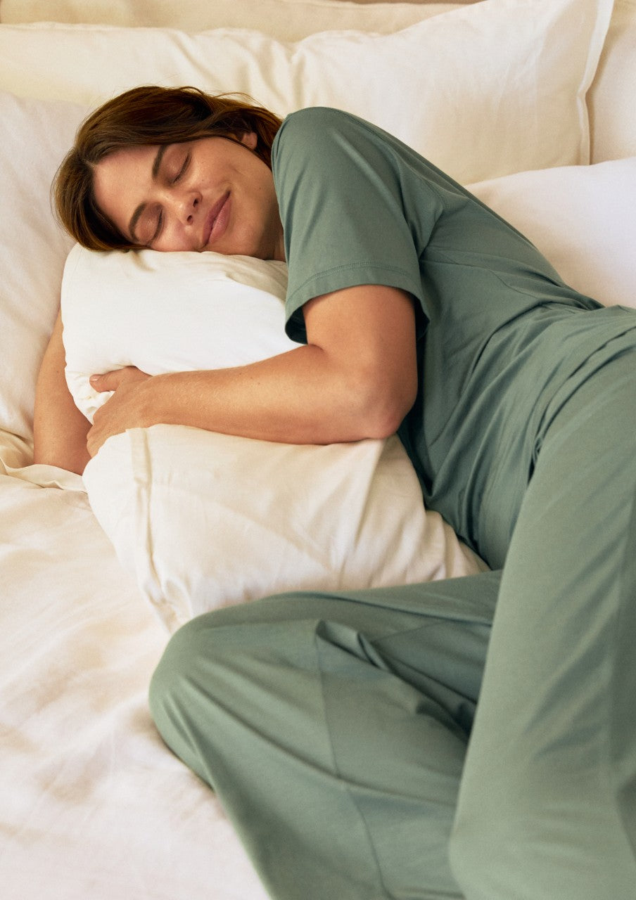 Underbar kvalite som andas och ställer in sig efter din kroppsvärme. Mjukt som silke mot huden i soft tencel. Resår i midjan och fickor på sidan. Raka lite vidare ben på byxan. Matcha gärna med tröjan i samma serie Deep Sleep wear.