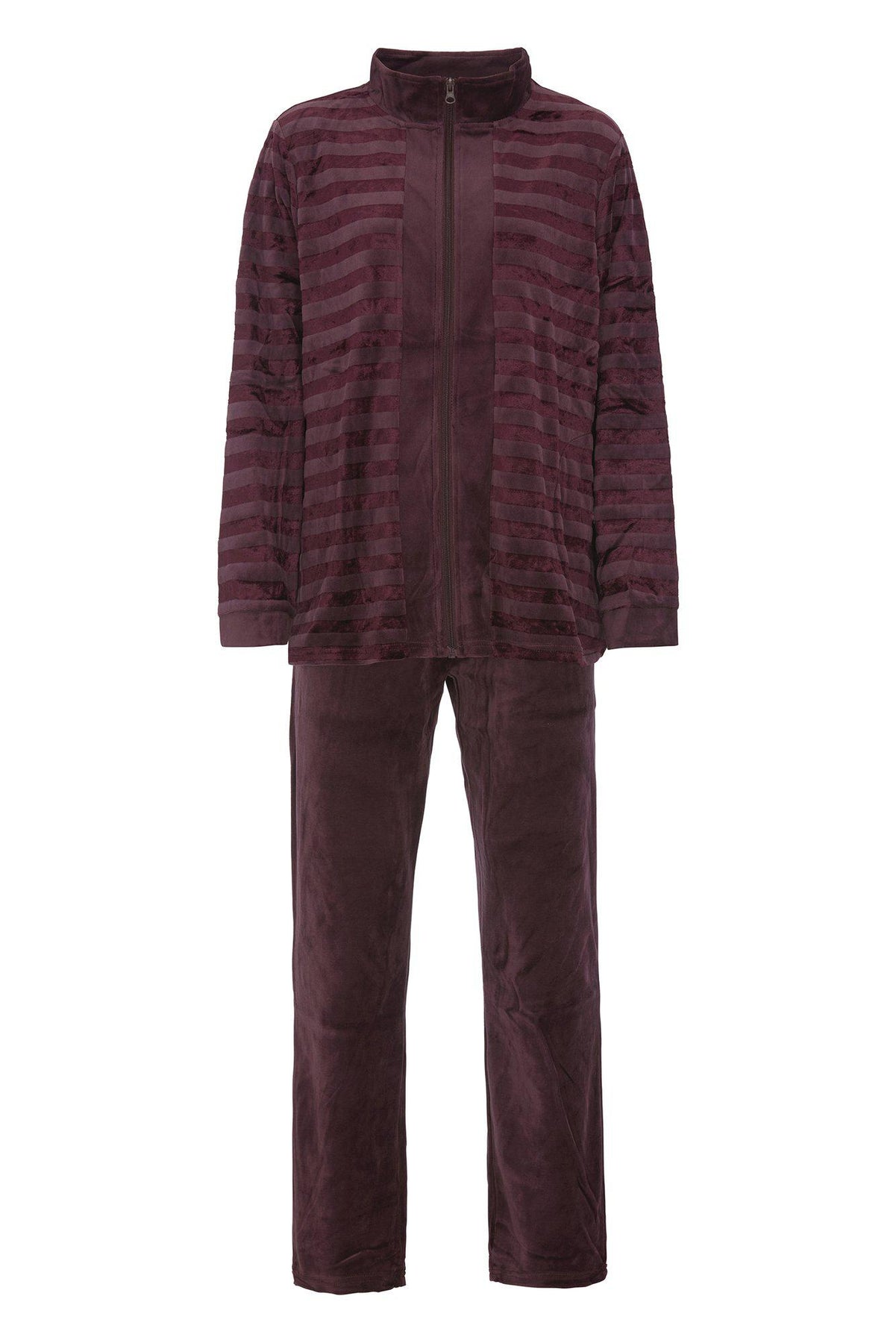 Upplev en perfekt kombination av komfort och stil med ett mjukt loungset i velour. Jackan är randig och har en smidig dragkedja som ger en modern känsla och gör plagget lätt att använda. Praktiska fickor i både jackan och byxorna ger en skön plats att värma händerna när temperaturen sjunker. Byxorna har en elastisk midja för en perfekt passform och extra komfort hela dagen.