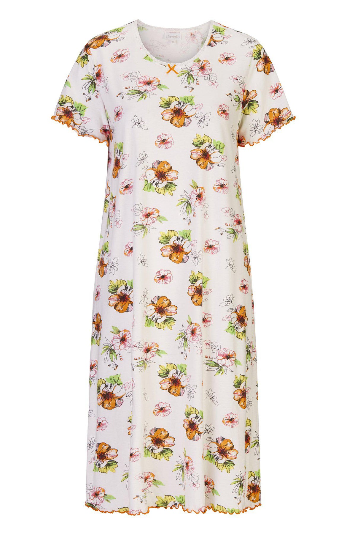 Upplev stil och bekvämlighet i vår nattklänning med spetsdetaljer runt halsen och korta ärmar, tillverkad av mjuk bomull.