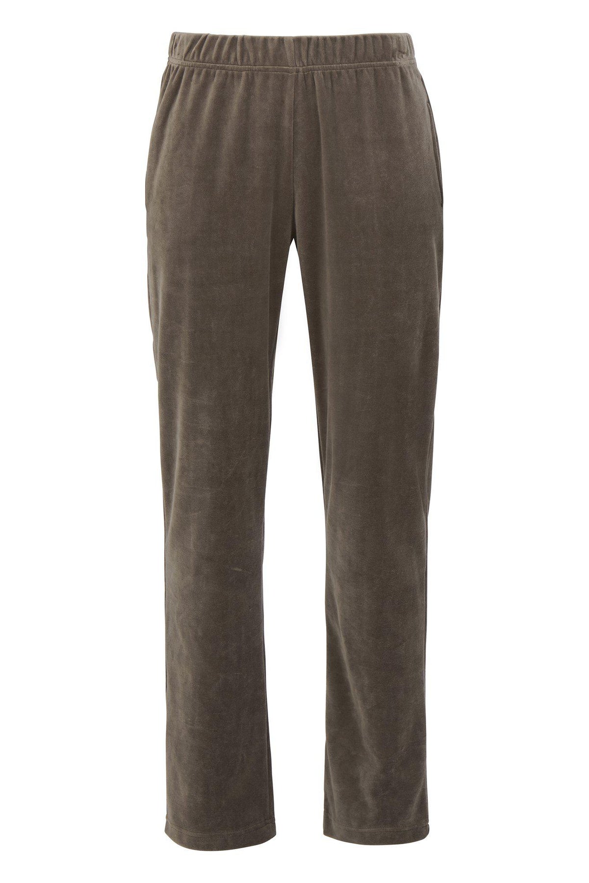 Velourbyxor med sidfickor och resår i midjan för optimal komfort. De är värmande och har en mjuk och följsam känsla som passar perfekt för både avkoppling och vardagsbruk
