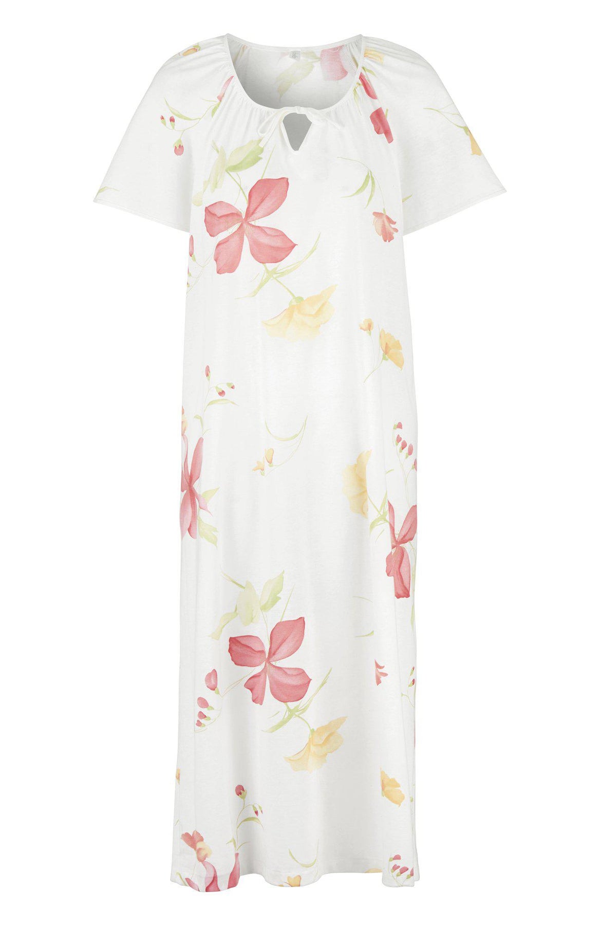 Detta långa nattlinne i mjuk bomullsjersey förenar komfort med sofistikerad stil. Kortärmad modell med rynkdetaljer framtill som kan knytas till en rosett, vilket ger en feminin och elegant finish, perfekt för mysiga kvällar med en touch av lyx.