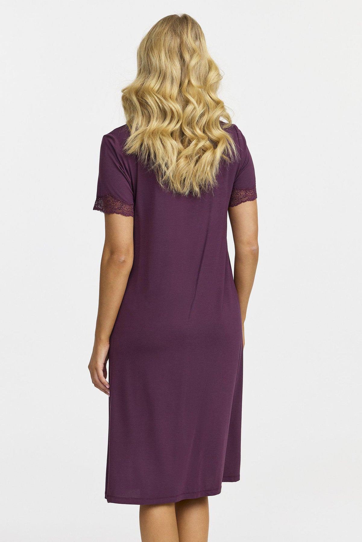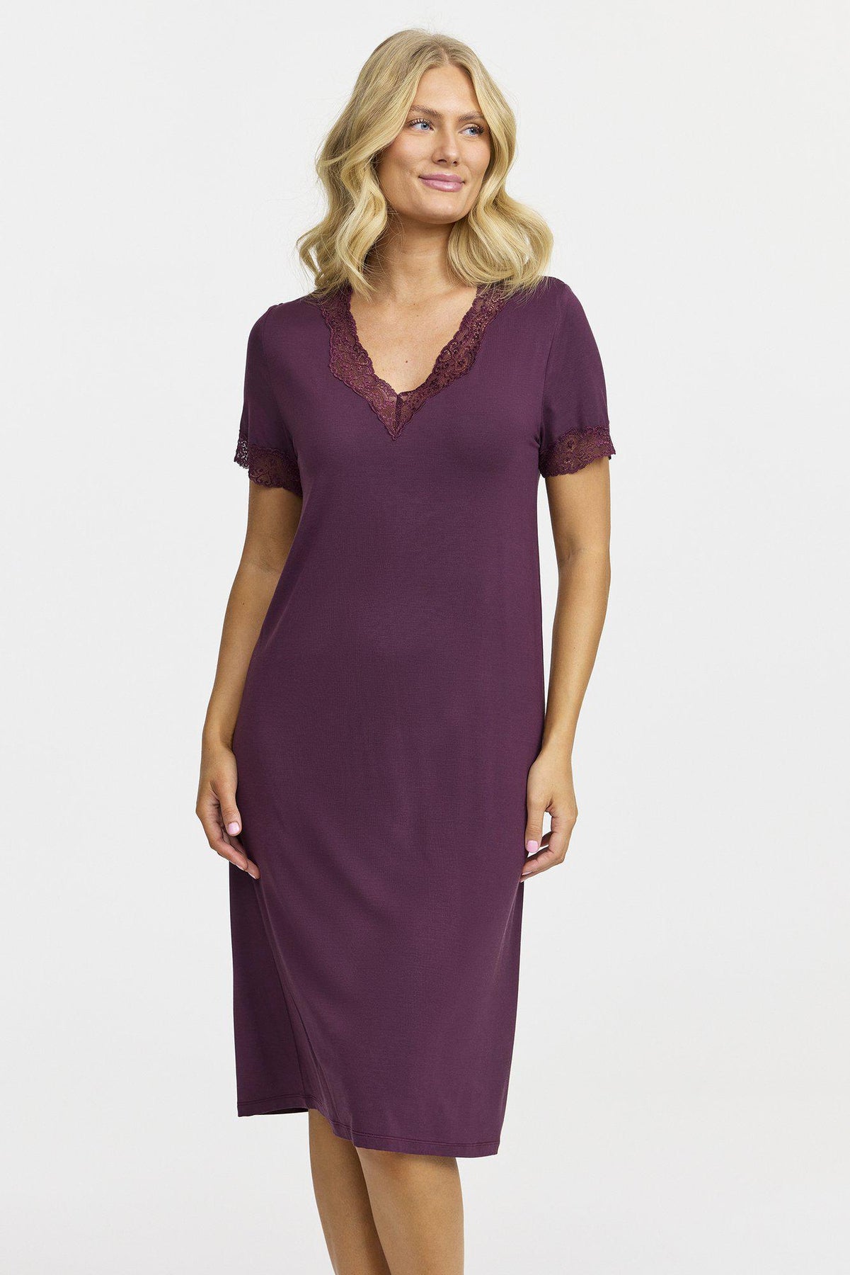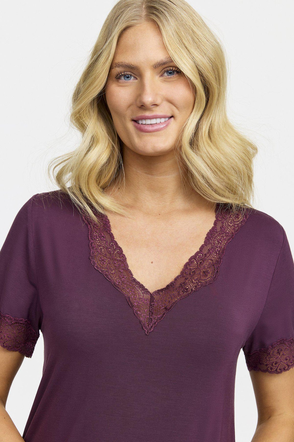 Nattlinne i bambuviskos med spets vid halsringning och ärmslut. Med sina korta ärmar kombinerar detta nattlinne komfort och stil. Bambuviskosmaterialet ger en lyxig mjukhet mot huden.