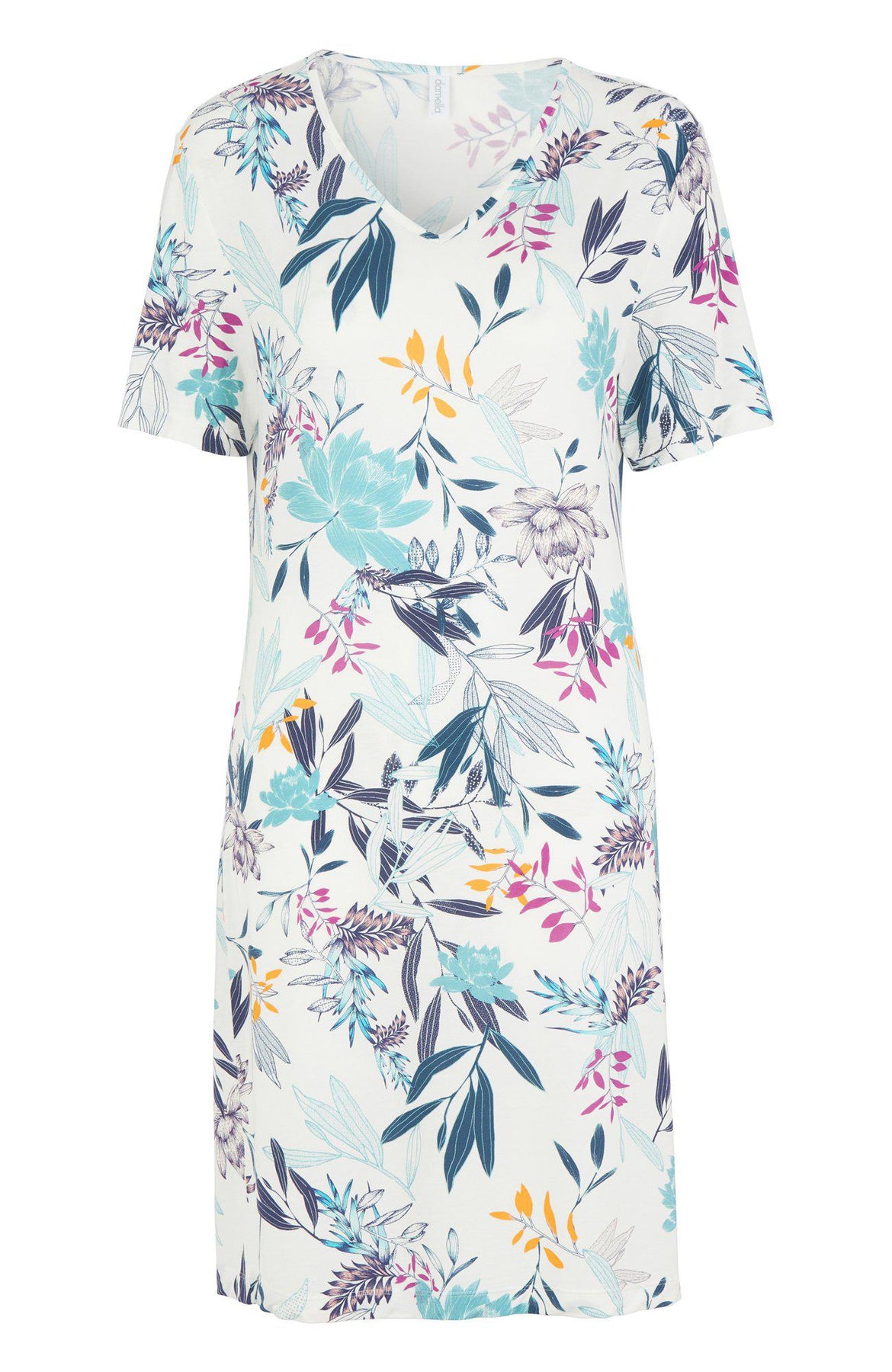 Mysigt och lätt nattlinne med kort ärm och V-ringning, tillverkat i modaljersey, ett naturligt och hållbart material som är otroligt mjukt och silkeslent mot huden. Perfekt för både varma och kyliga nätter, och ger en lyxig känsla som gör varje natt extra behaglig och avslappnande.