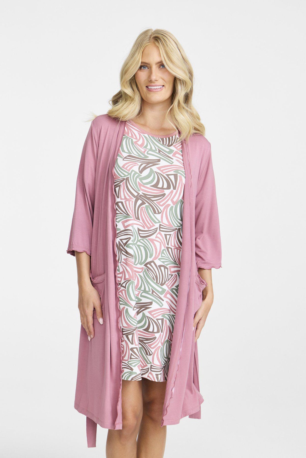 Kortärmat nattlinne tillverkat i mjuk bambuviskos. Designat med en klassisk rund halsringning och ett vackert mönster.