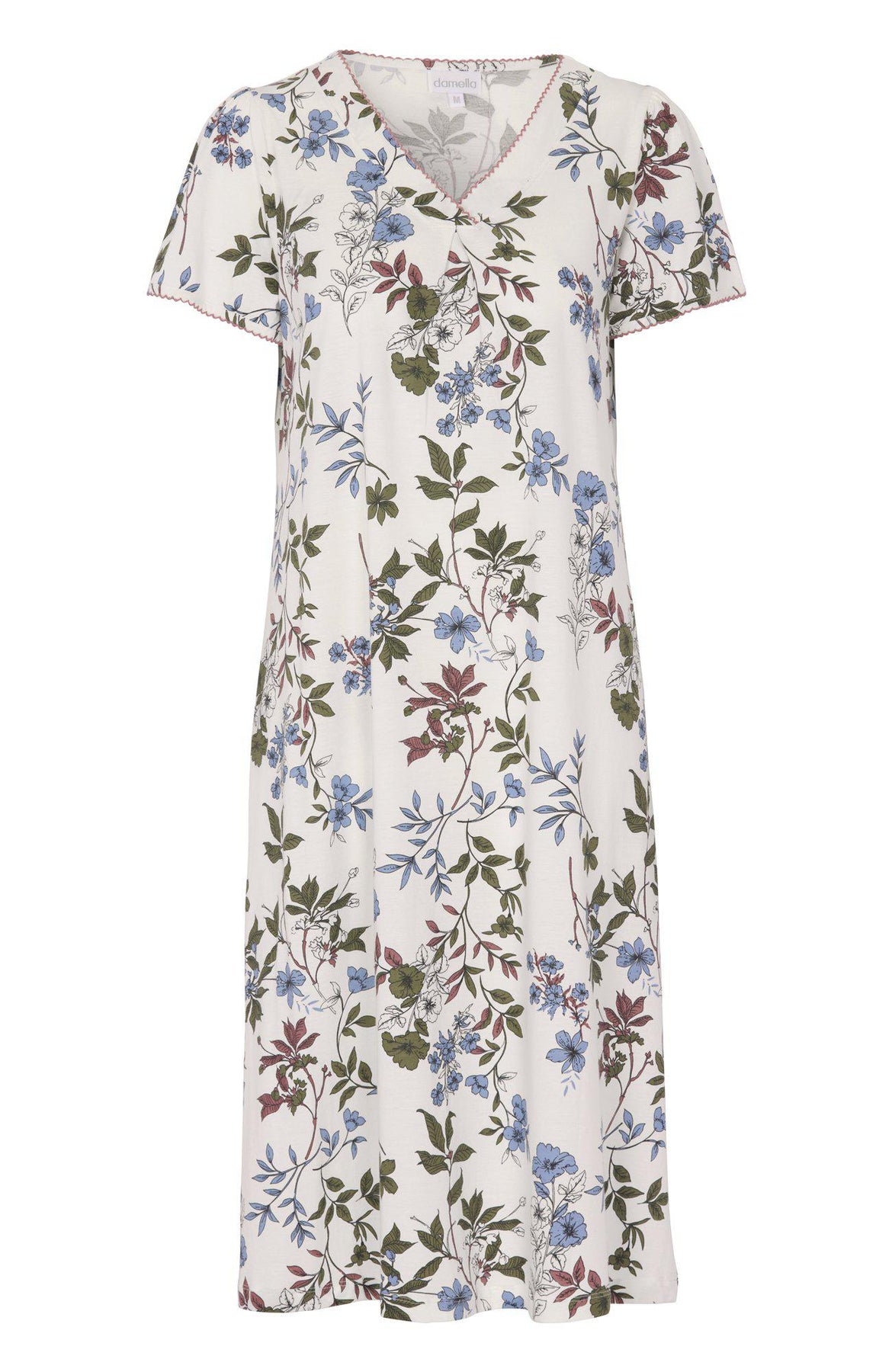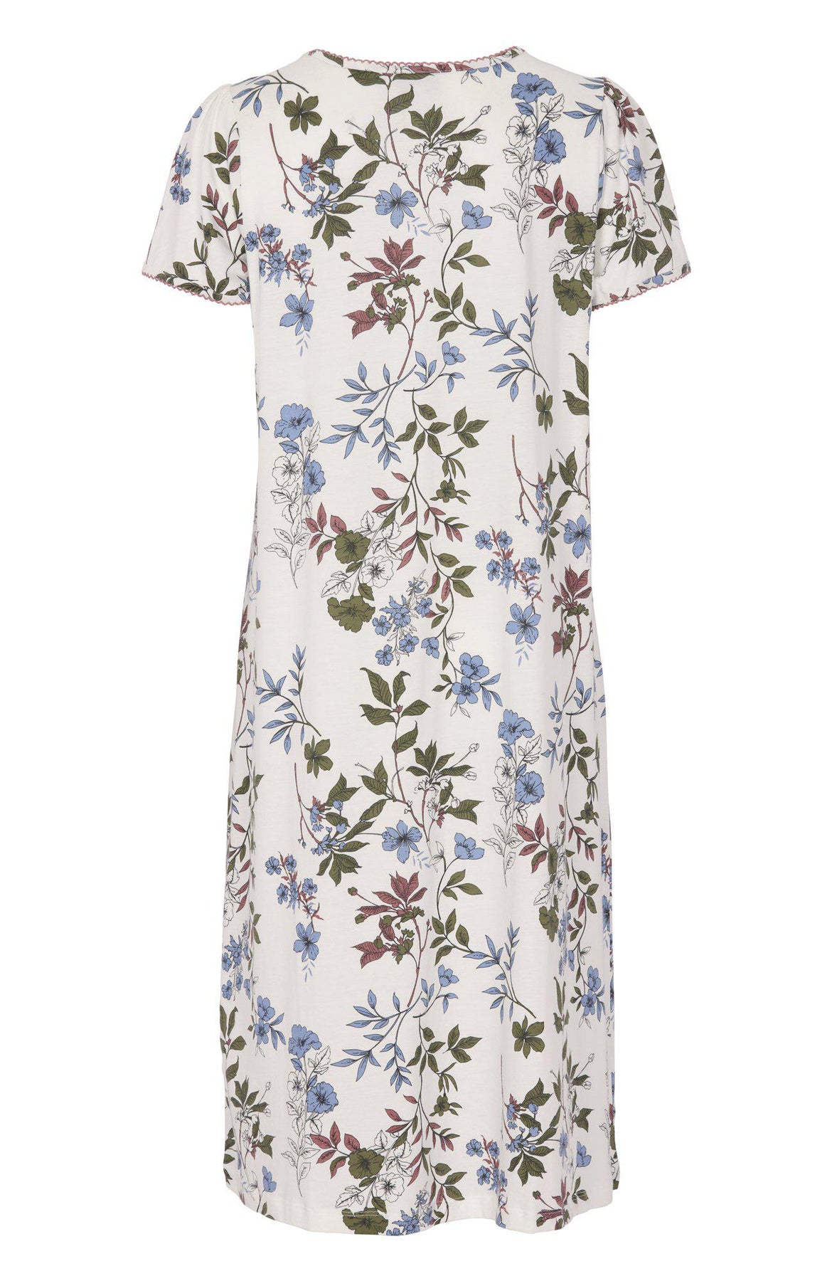 Mjuk och skön kortärmad nattlinne med V-ringning, tillverkad i en härlig blandning av bomull och modaljersey, ett naturligt material som känns silkeslent och otroligt mjukt mot huden. Nattlinnet har ett dekorativt veck fram som ger en lätt elegant form, och fina feminina puffdetaljer på axlarna som tillför en subtil charm. Perfekt för både varma och kyliga nätter, och ger en lyxig känsla som gör natten extra behaglig och avslappnande.