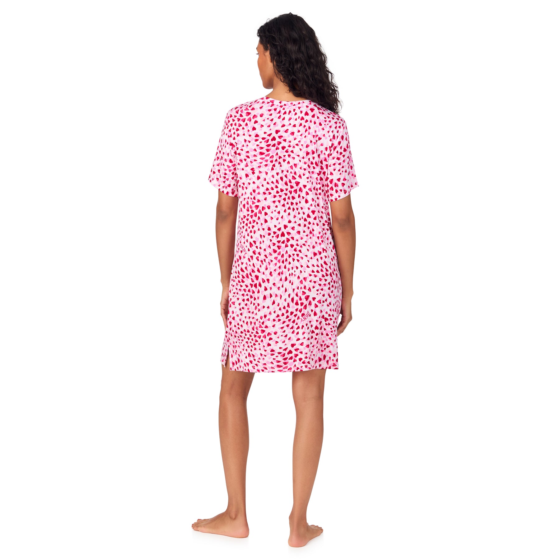DKNY Nattlinne i härligt hjärtligt mönster. Vit med rosa hjärtan, rundhalsad och fickor på sidan. Loggan DKNY framtill på bröstet. Mjuk och ljuvlig kvalité som alltid med DKNY.