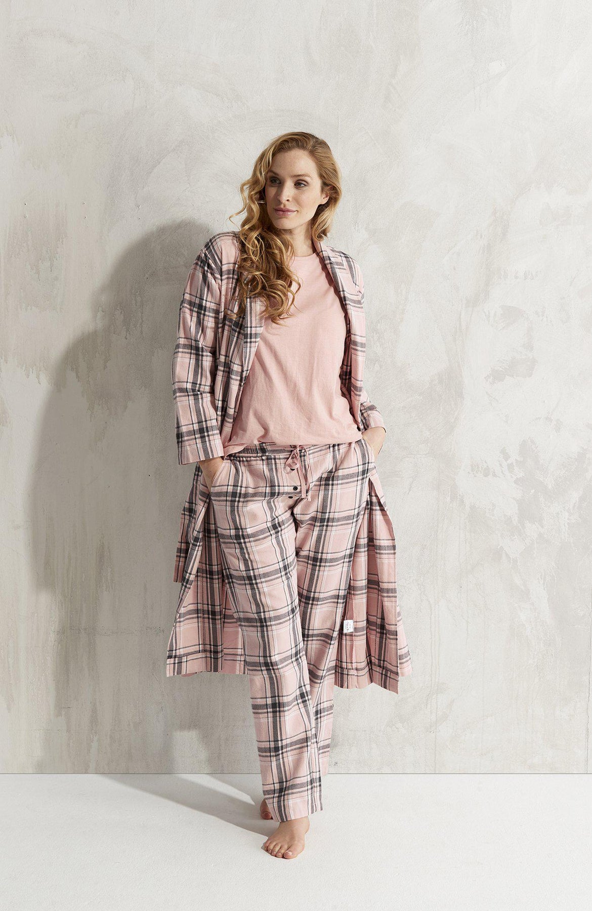 Omlott-rock i rutig bomullsflanell med sjalkrage, lång ärm och fickor i sidsömmarna