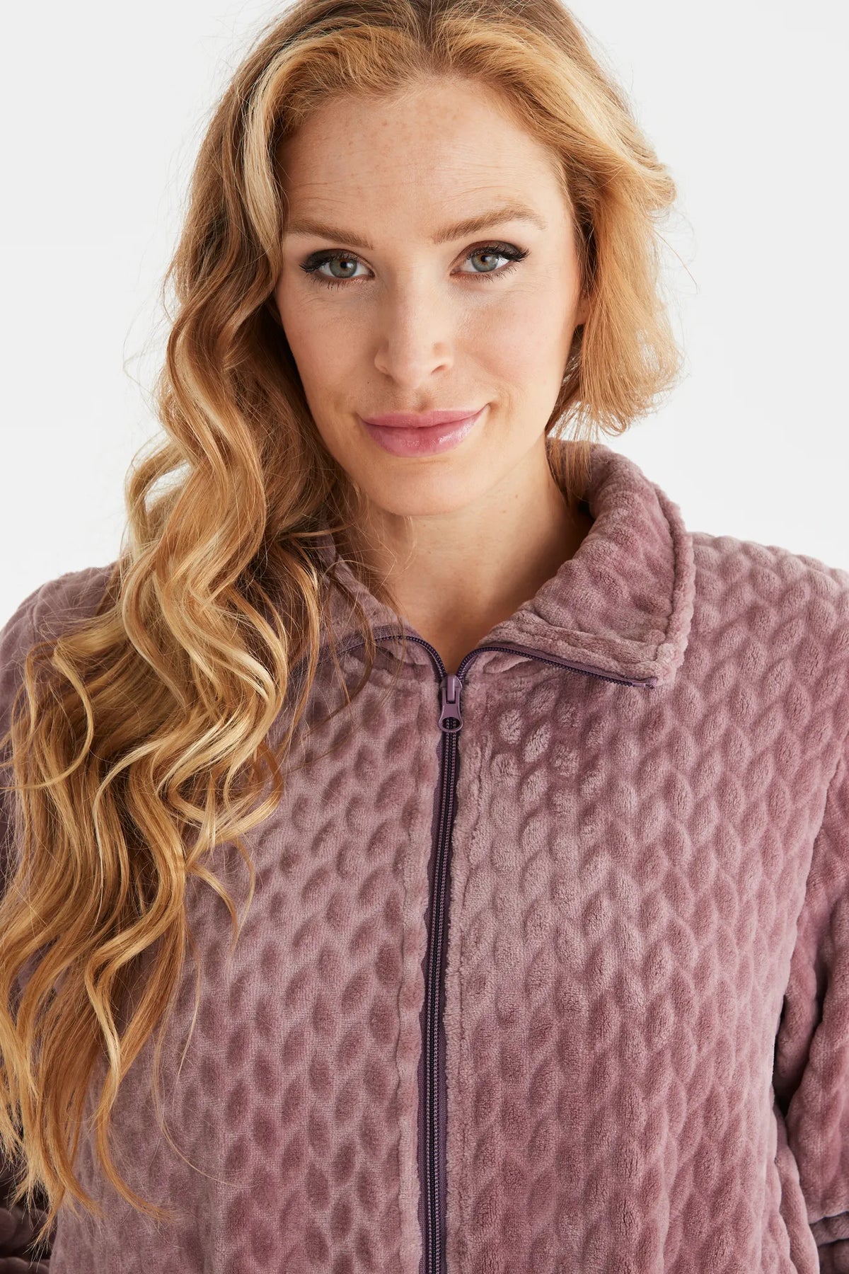 Rock i skön velourfleece med hög krage, dragkedja samt sidfickor. Rocken har även ett fint mönster i tyget. Rocken är liten i storlek. Vi rekommenderar att gå upp i storlek.