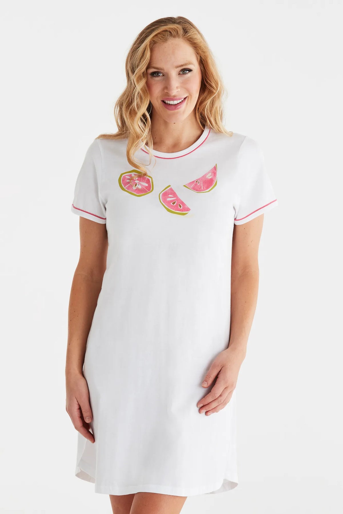 Nattlinne i bomullsjersey med motivtryck. Med rund hals och kort ärm.