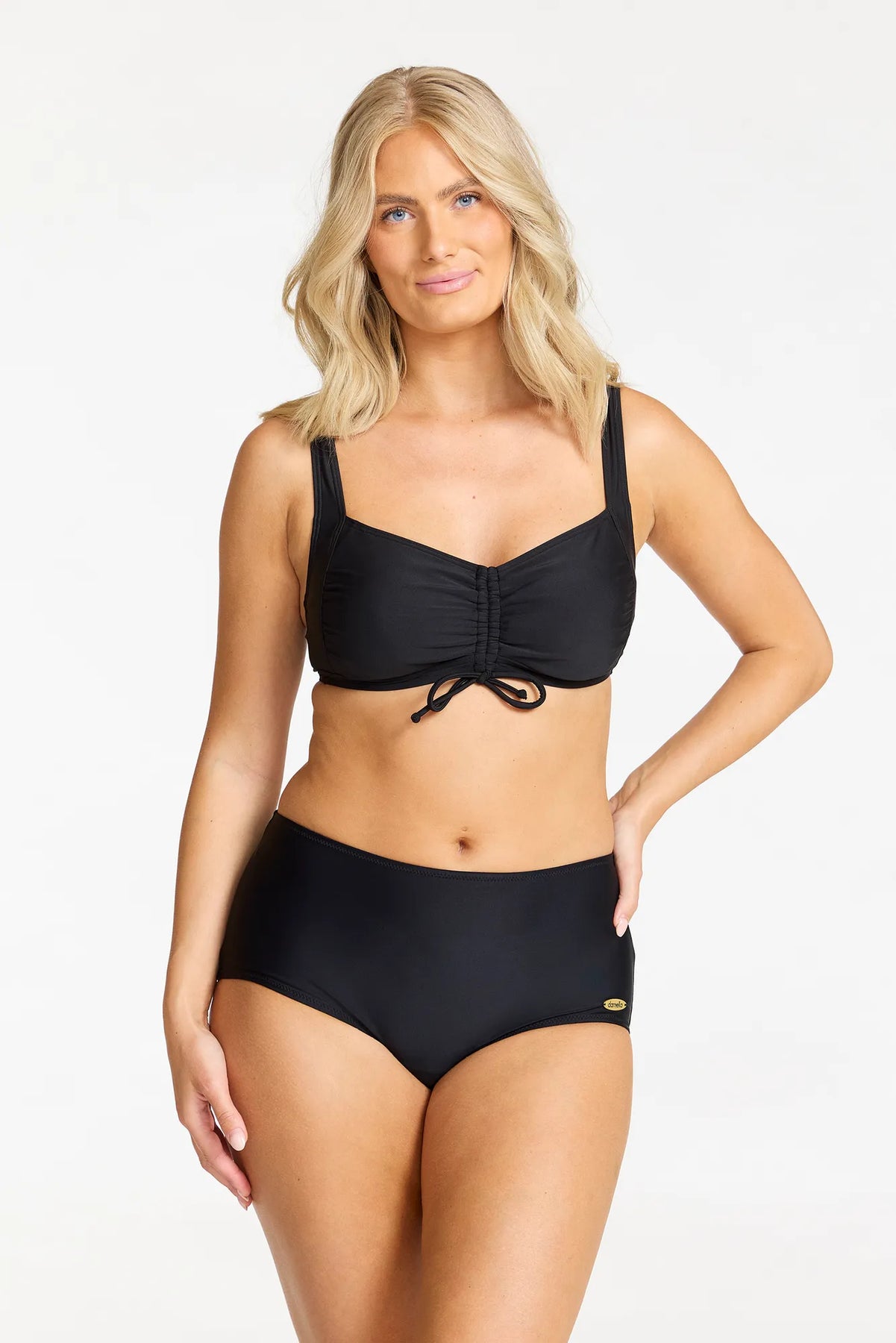 Upptäck vår bikini topp Rosanna. Den har mjuk vaddering i kuporna och protesfickor, vilket gör den både bekväm och funktionell. Den kan enkelt justeras med en dragsko fram för att passa dina individuella preferenser. Toppen erbjuder en stilren och tidlös design som passar perfekt för soliga dagar.