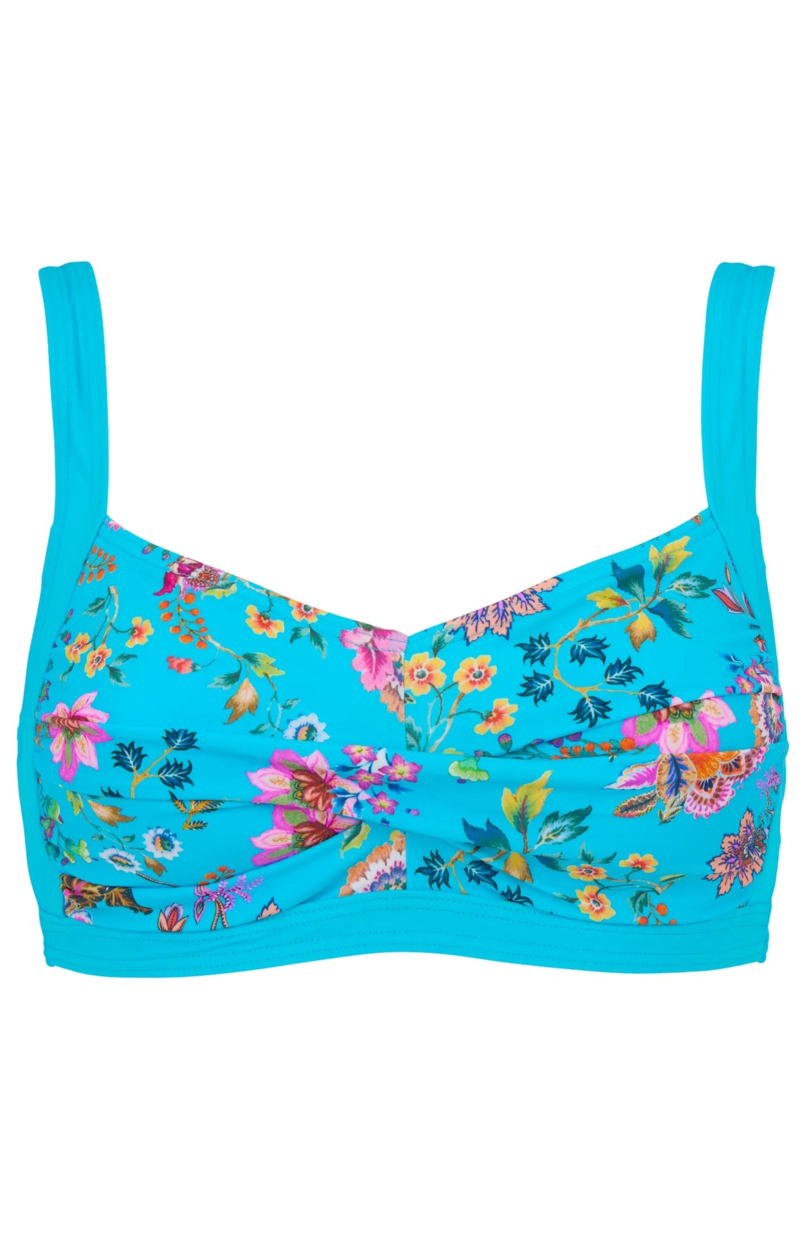 Bikini-bh Rita med en snygg twist-effekt framtill och mjuk vaddering i kuporna för extra bekvämlighet. Modellen har reglerbara axelband och inkluderar även en praktisk protesficka, vilket ger en både stilfull och funktionell touch. Upplev komfort och en smickrande passform med denna eleganta bikinitopp.