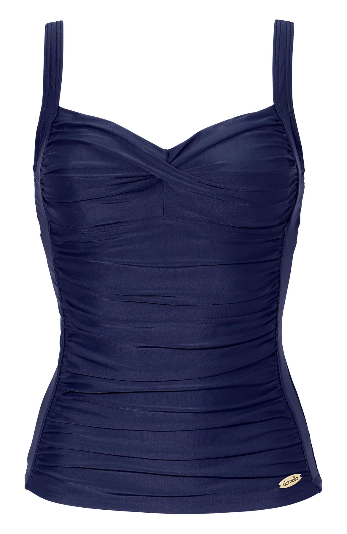 Tankini-linnet Geena kombinerar stil och funktion med en mjukt vadderad bh och protesficka för extra komfort och stöd. De justerbara axelbanden ger en perfekt passform, medan den generösa designen runt midjan skapar en smickrande och bekväm känsla. Bikinitrosa köps separat – komplettera din look med en matchande trosa!