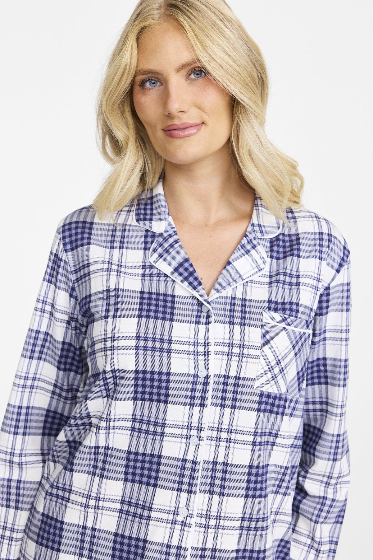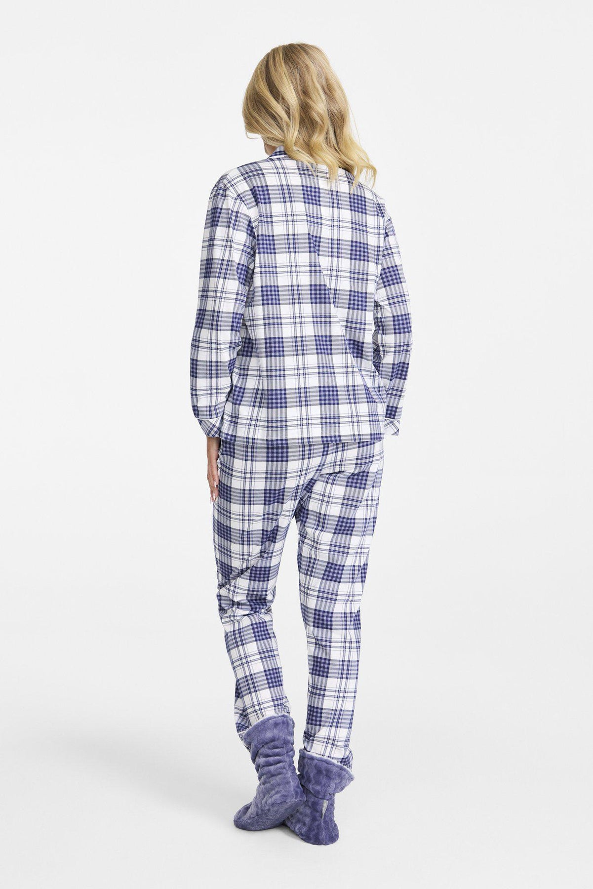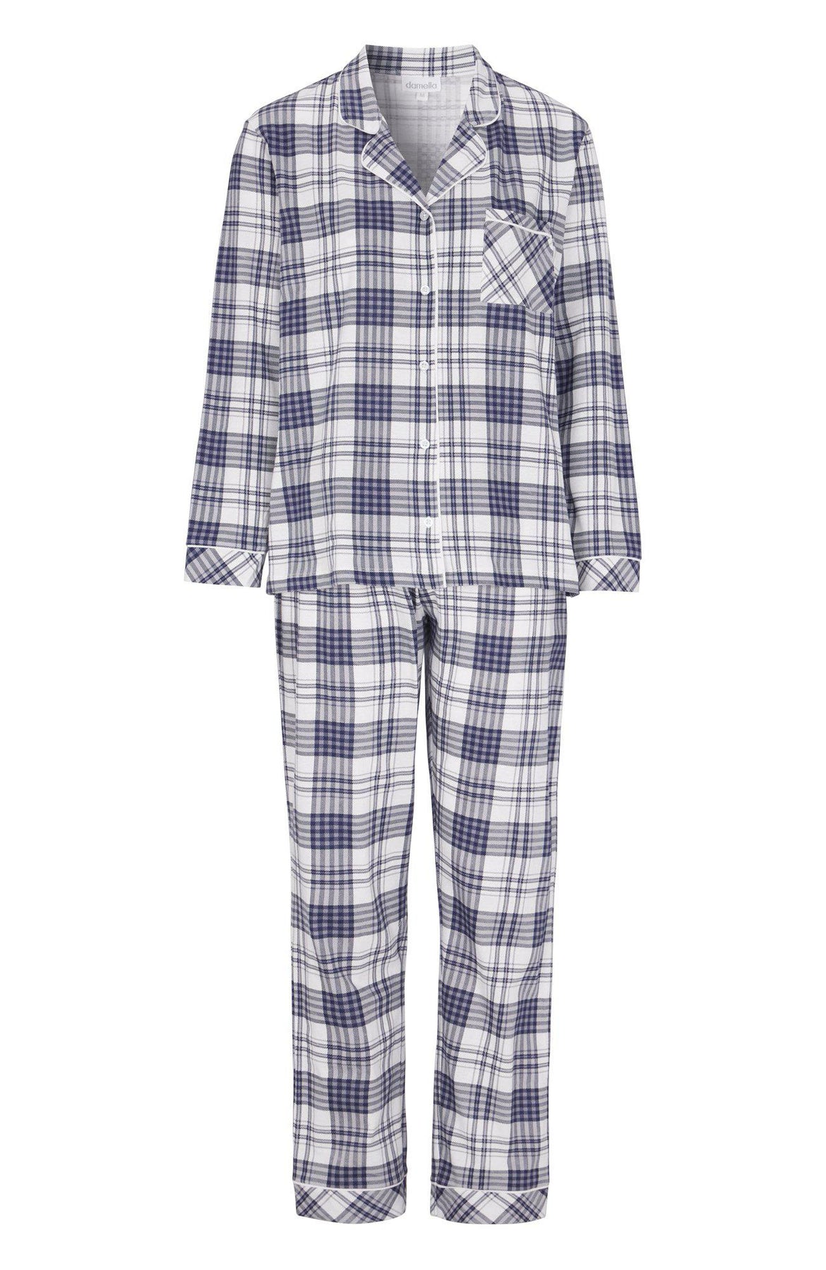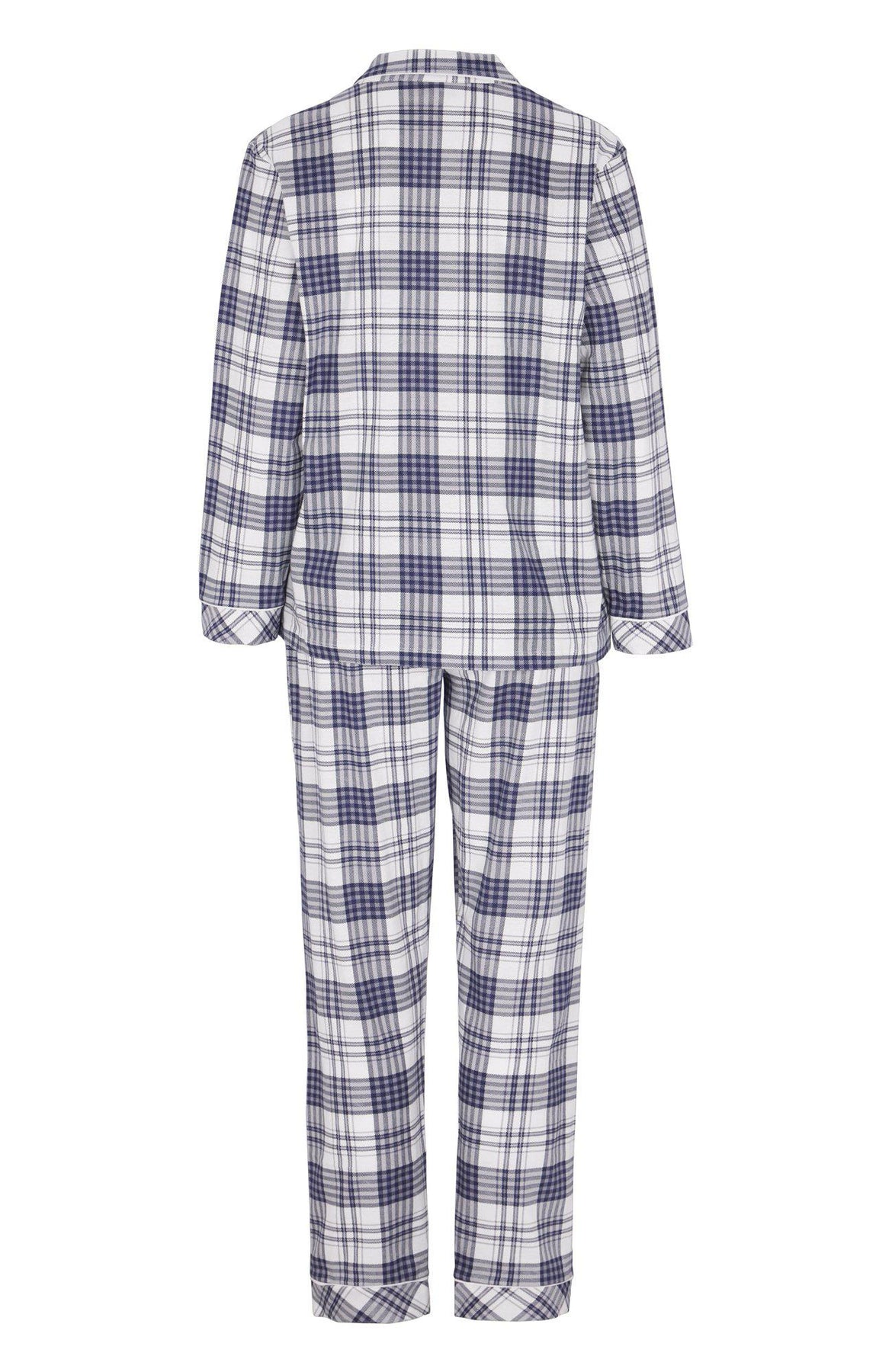Unna dig en god nattsömn med denna pyjamas i mjuk bomullstrikå med klassiskt rutigt mönster. Pyjamasens överdel har en traditionell krage och knappar framtill, vilket ger en tidlös och elegant look. Byxorna har en elastisk midja som ger en bekväm och anpassningsbar passform, vilket ger dig full rörelsefrihet och komfort. Idealisk för både nattsömn och avkopplande stunder hemma.