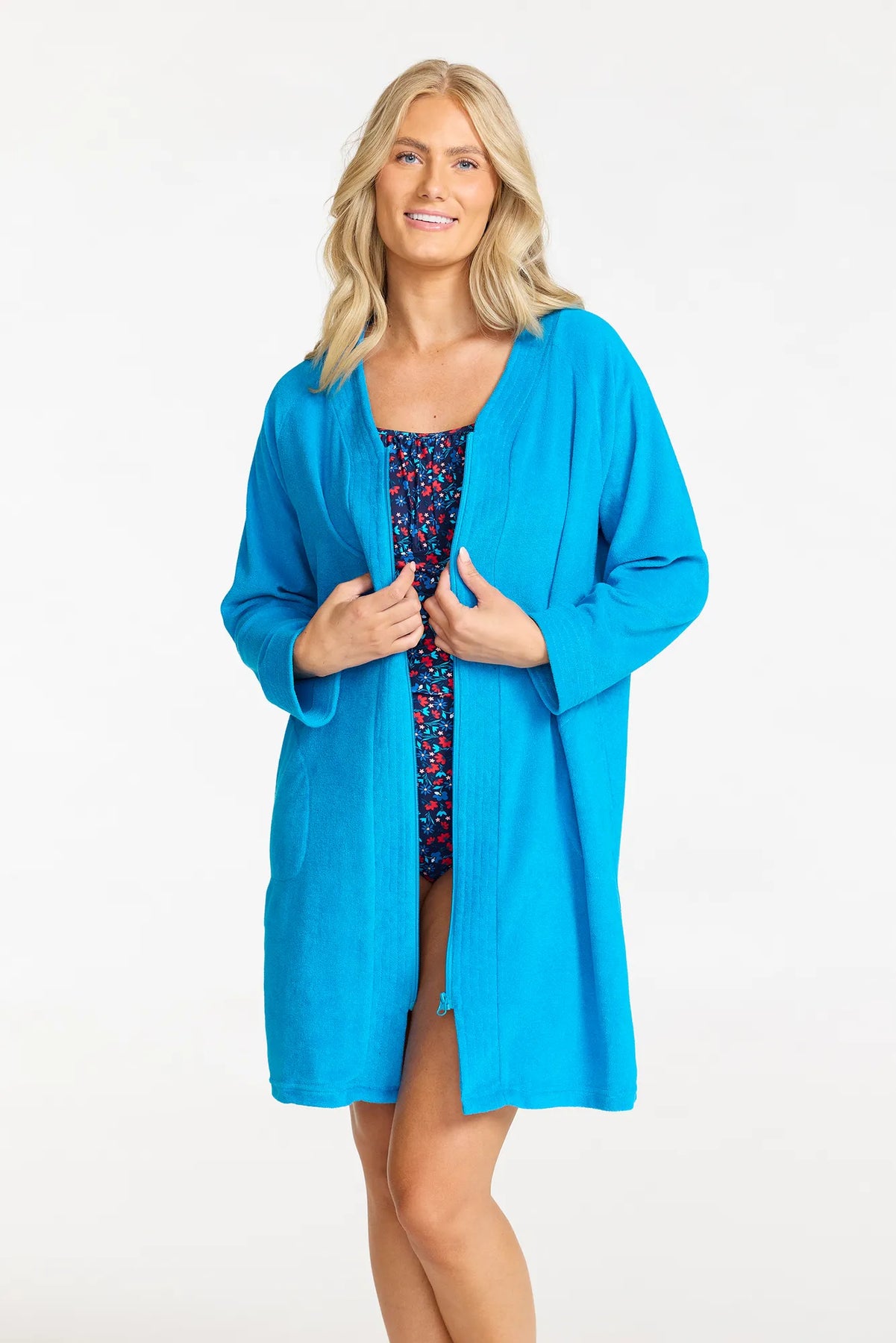 Upplev maximal komfort och stil på stranden med vår stretchfrottérock. Med lång raglanärm, praktiskt blixtlås framtill och högkvalitativt material är den perfekt för bad- och strandaktiviteter. Ge din strandgarderob en uppgradering och njut av varje solig dag med stil och bekvämlighet!