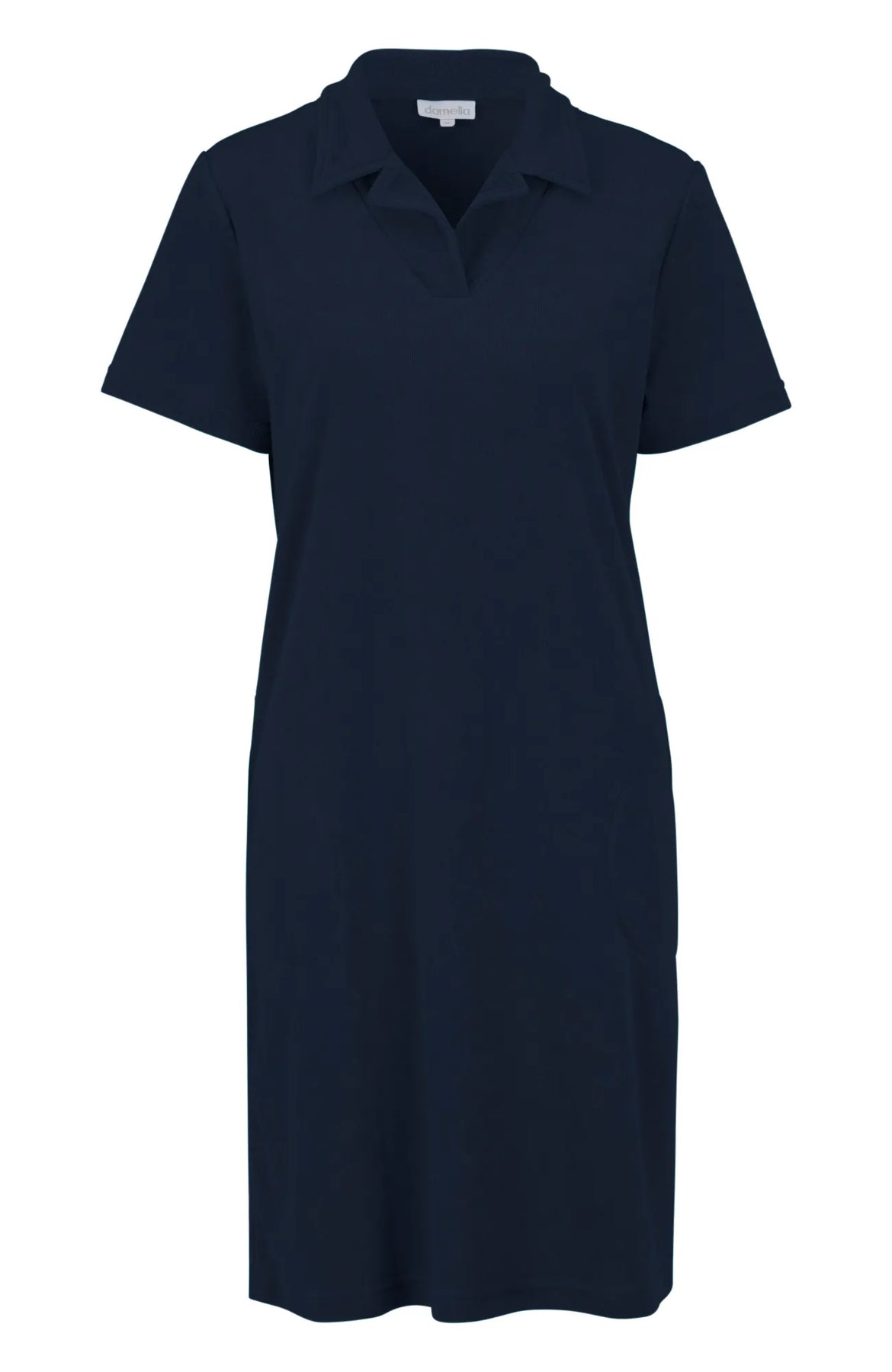 Klänning i stretchfrotté med krage, kort ärm och fickor. Perfekt för flera olika tillfällen, från avslappnade vardagslooks till stranden eller andra bekväma aktiviteter.