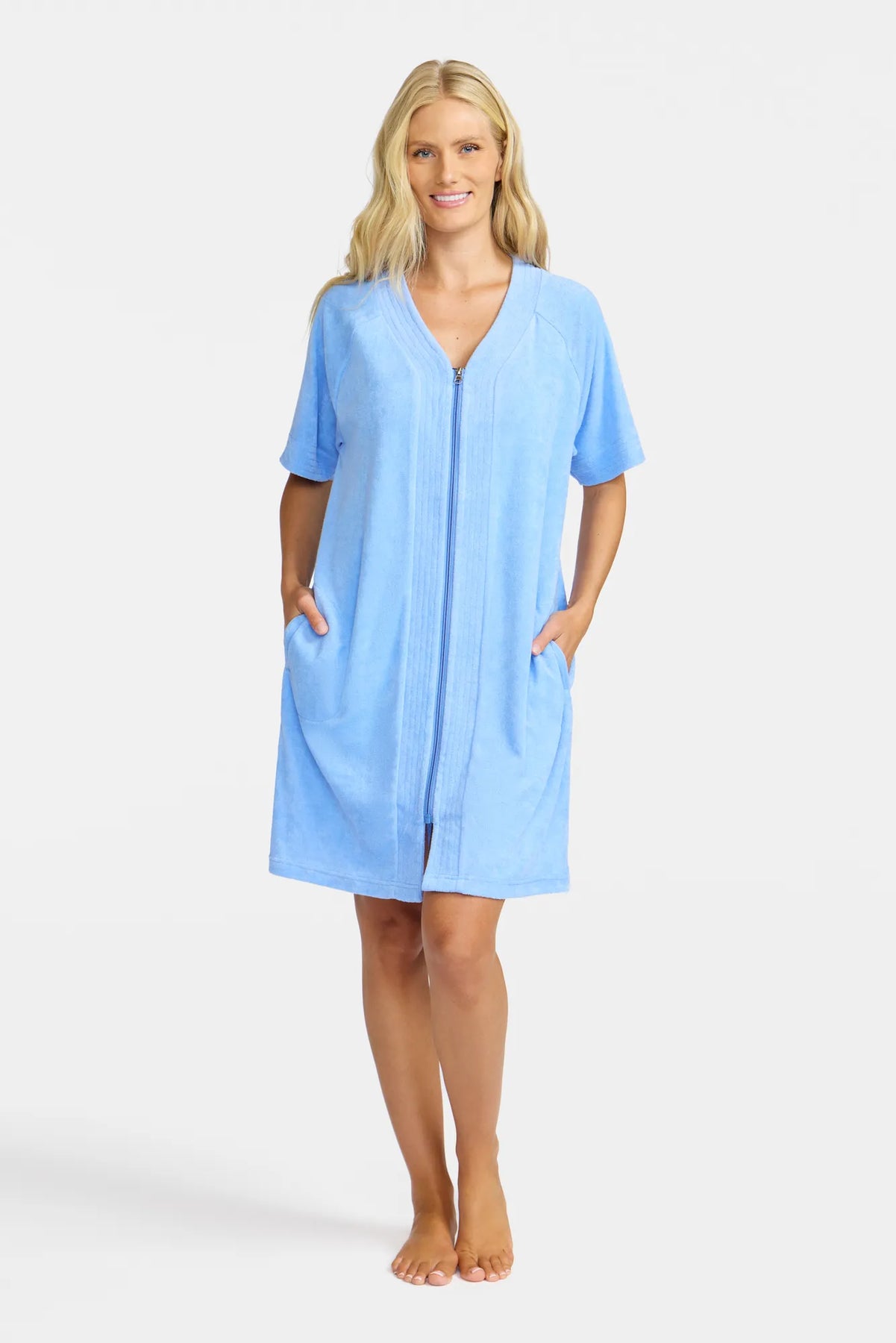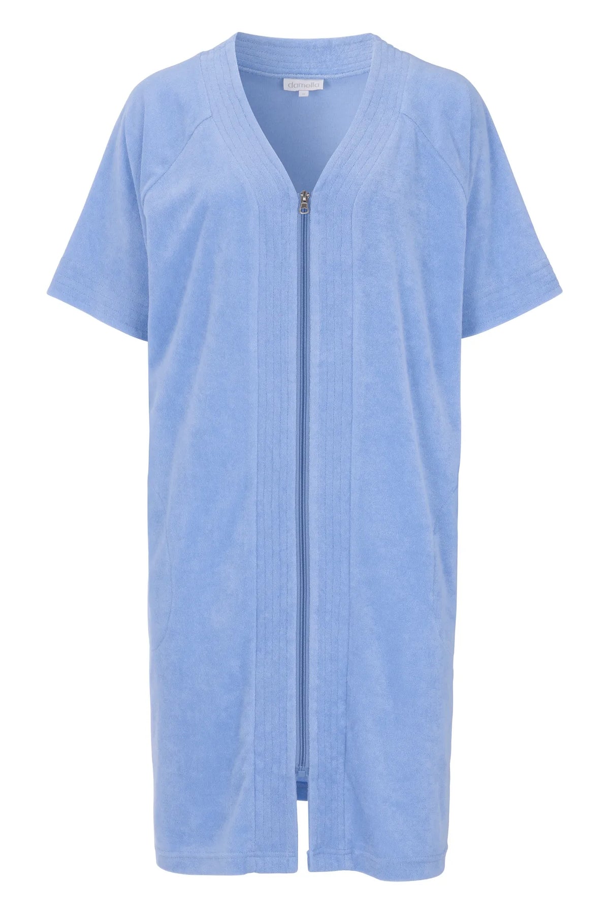 Upptäck vår rock i stretchfrotté, ett mångsidigt plagg som kombinerar funktionalitet med stil. Den har en smidig dragkedja framtill och korta ärmar för en bekväm passform. Rocken har en mjuk insida och en frottéstruktur på utsidan, vilket gör den både skön och praktisk. Det är det perfekta plagget för vardagsmys hemma eller som ett smidigt och snyggt lager över badkläderna på stranden.