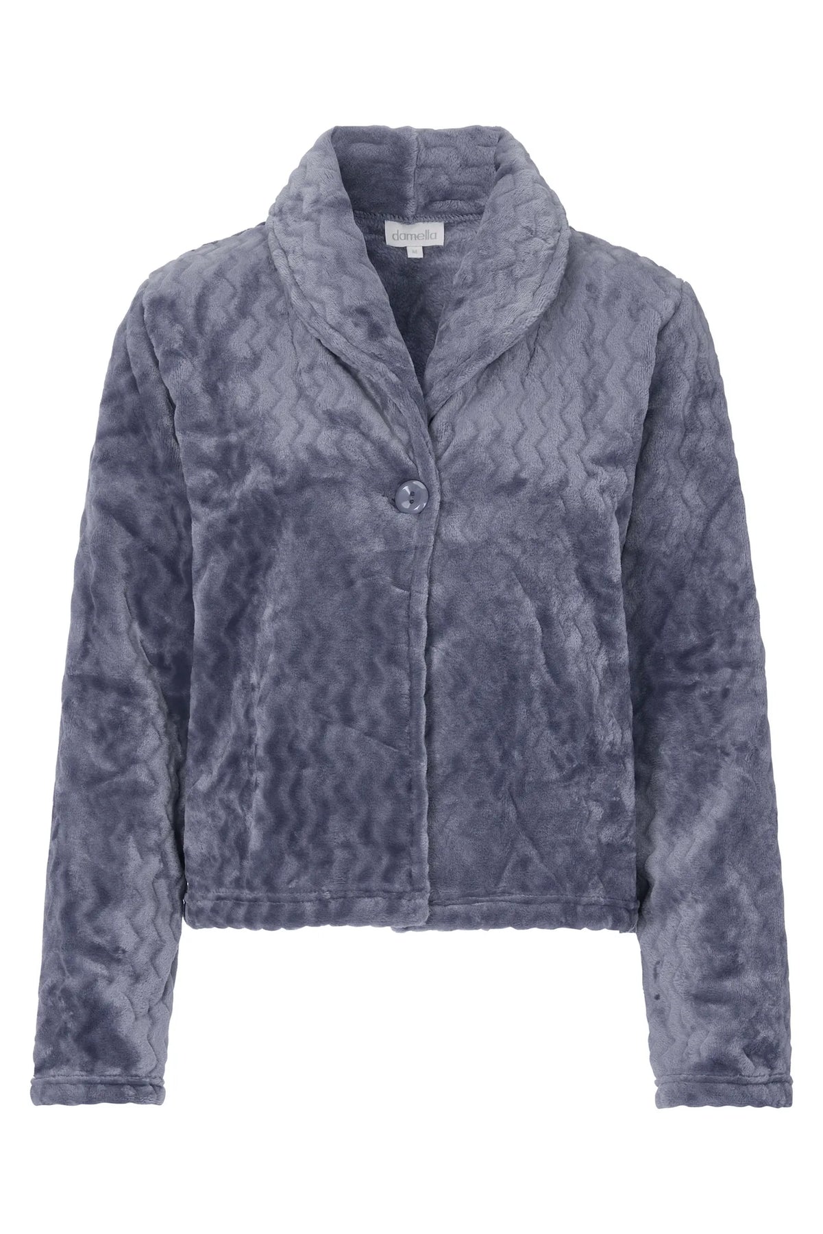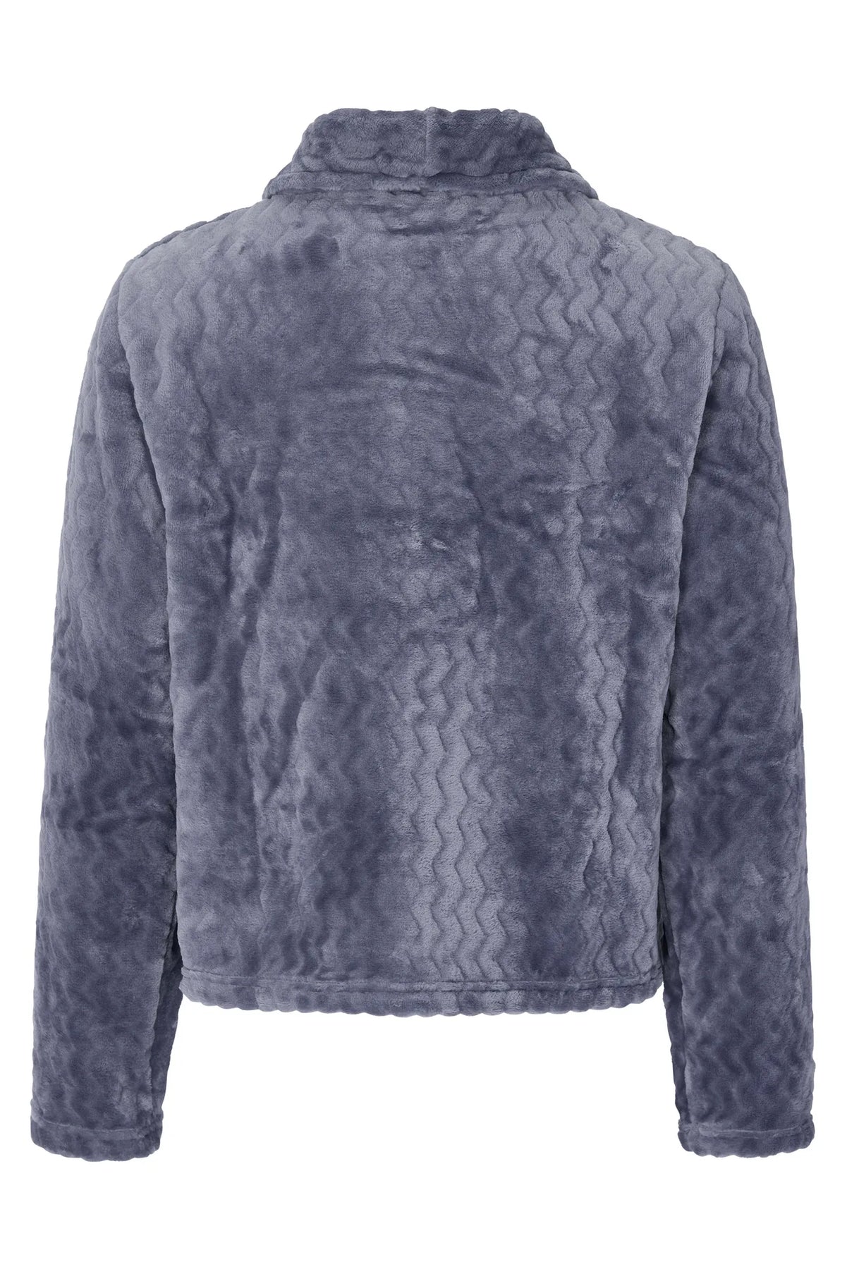 En bäddjacka i jacquardfleece med sjalkrage och en knappstängning. Varm, mysig och mångsidig, perfekt för att hålla sig bekväm under kyligare dagar både hemma och borta. Som att få en varm kram, oavsett var du befinner dig.