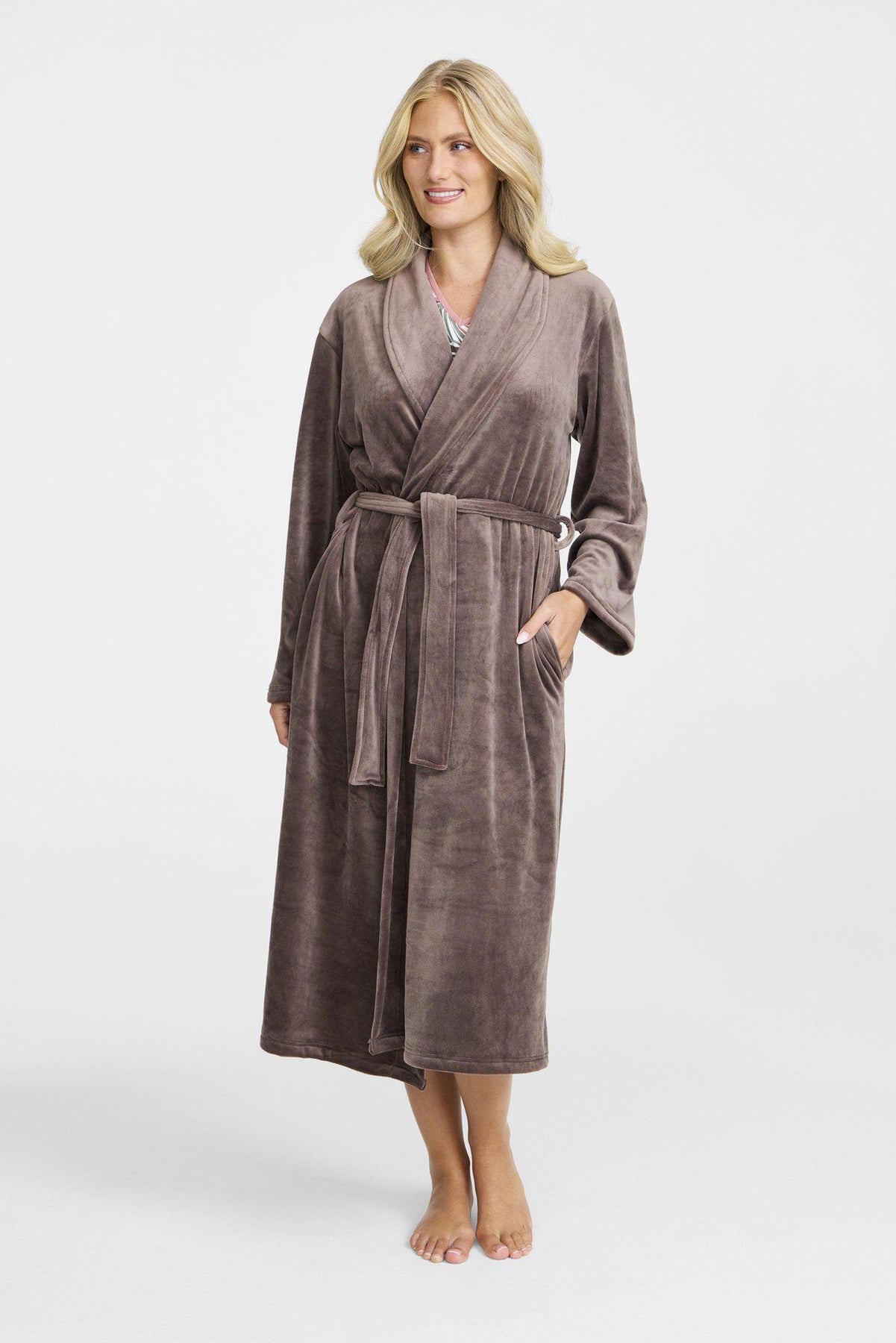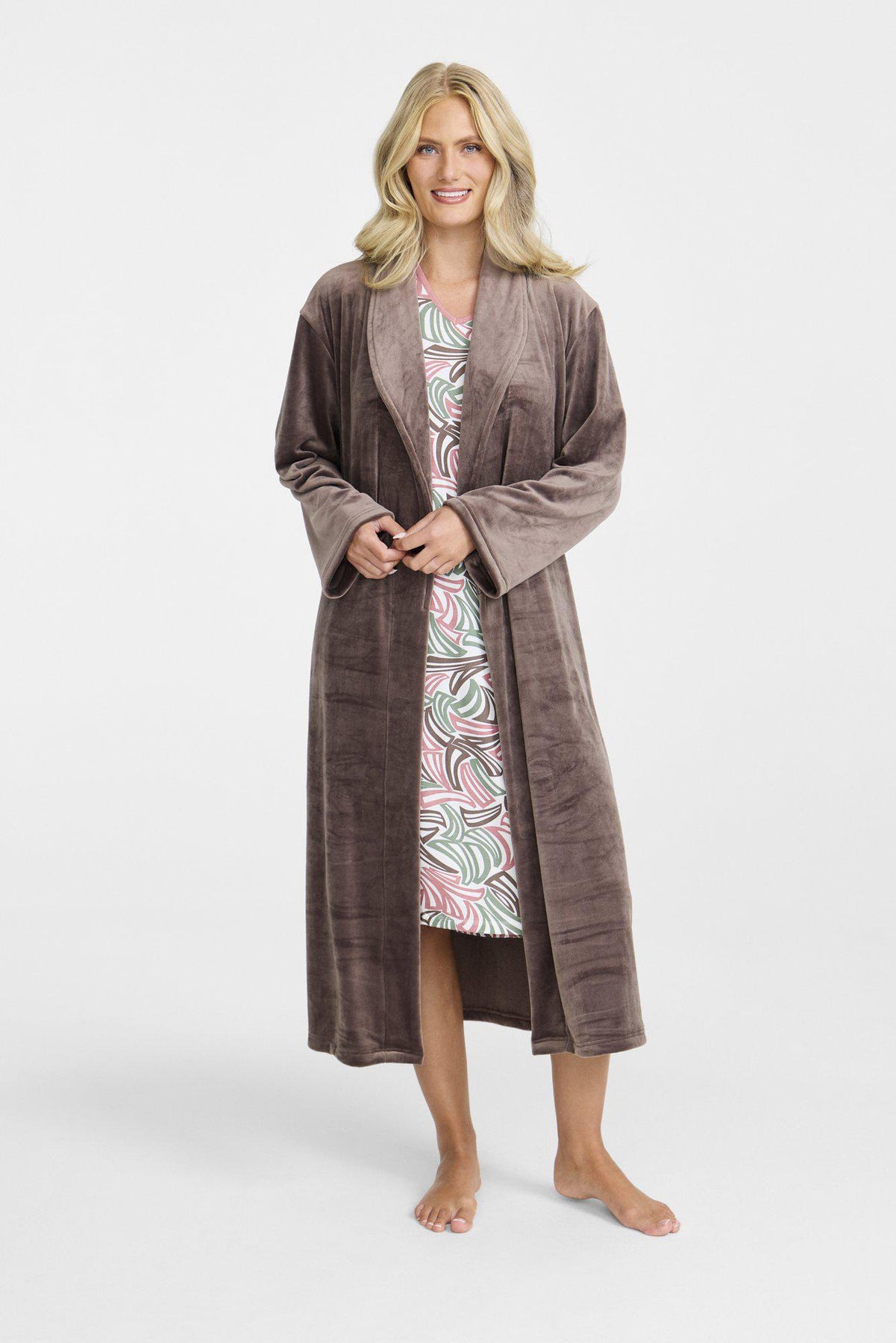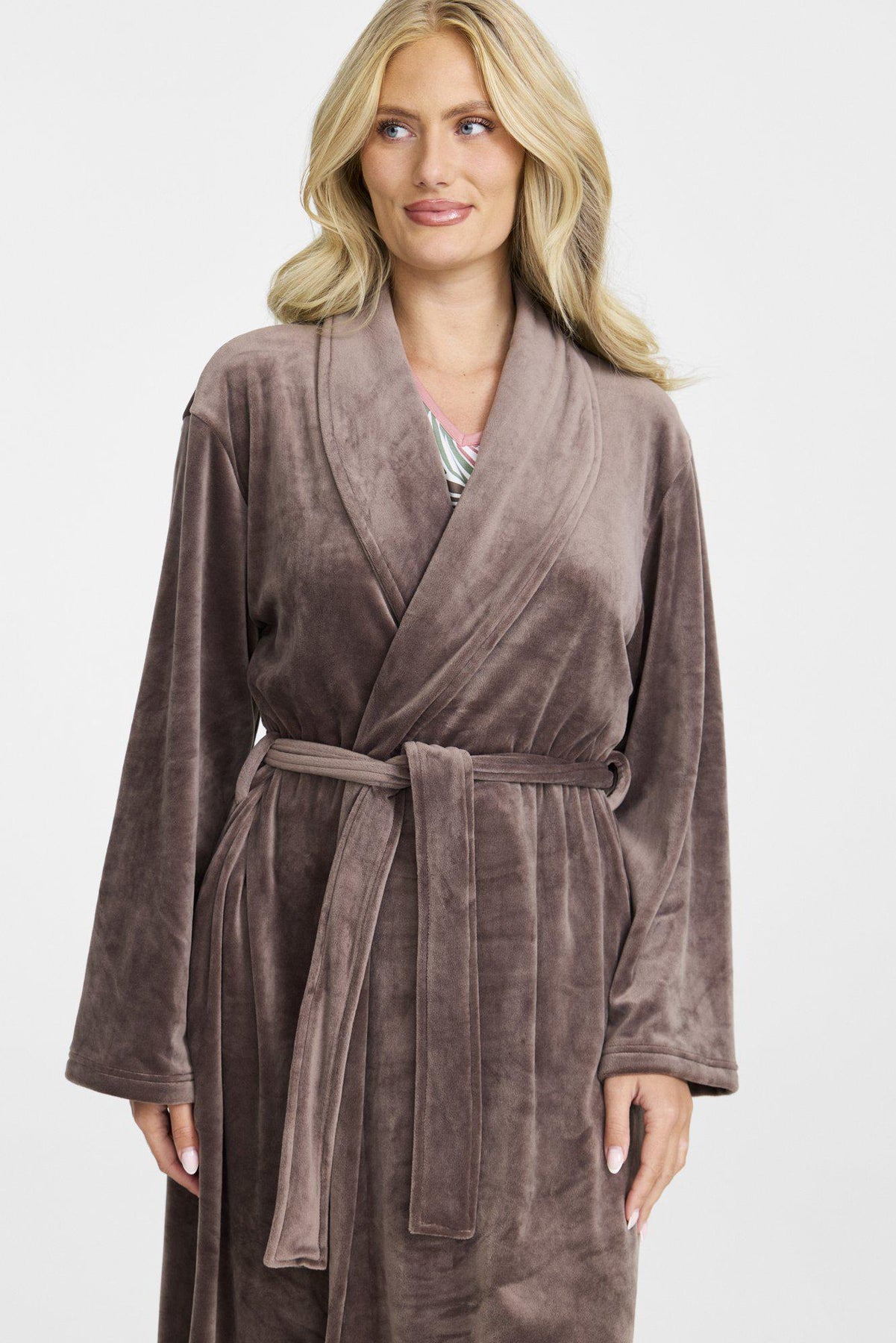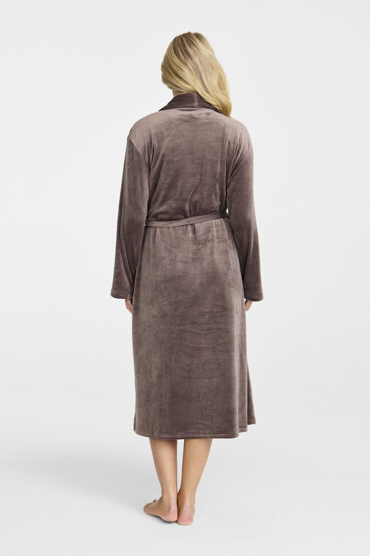 Upptäck vår omlott-rock i lyxig velourfleece. Med en elegant sjalkrage och praktiska fickor i sidsömmarna kombinerar denna rock komfort och stil på ett sofistikerat sätt. Perfekt för lugna morgnar eller mysiga kvällar hemma.