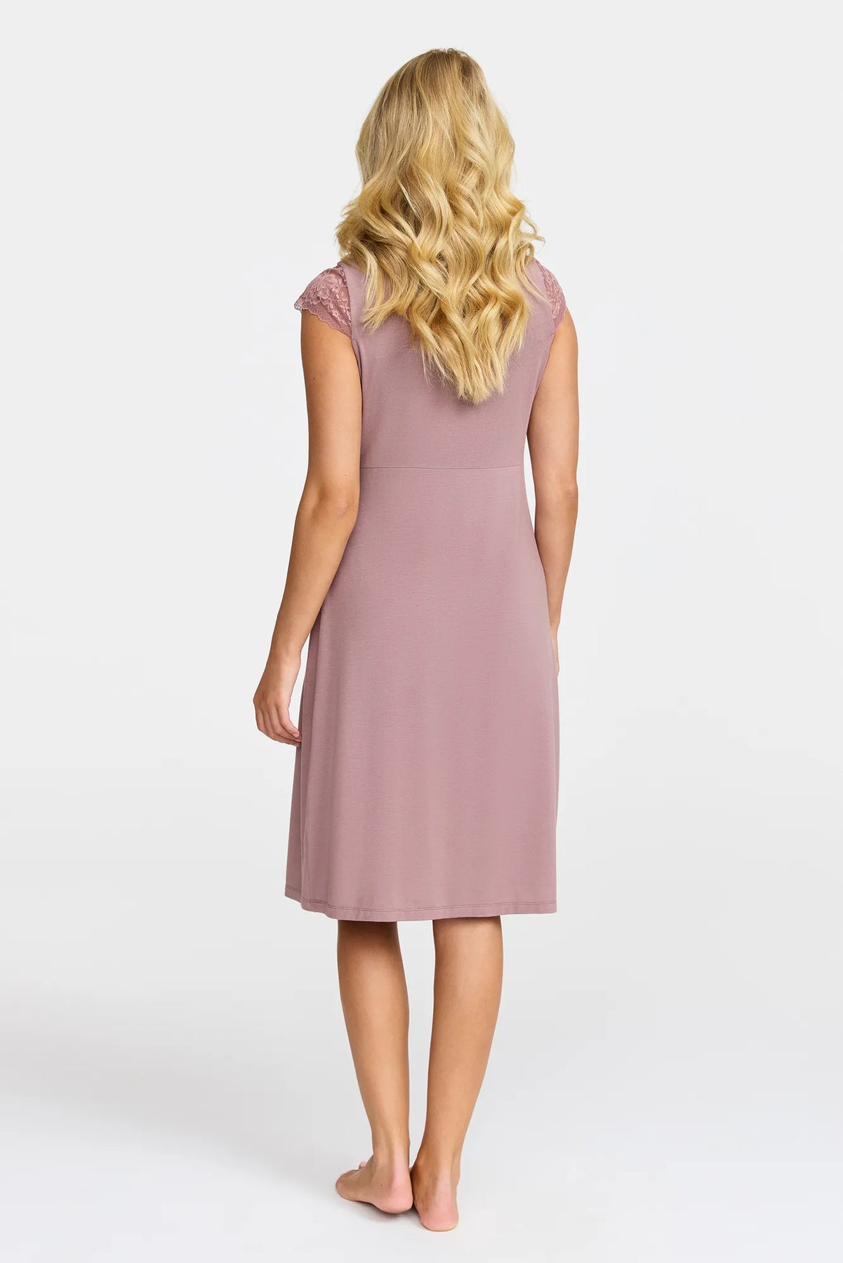 Upplev en känsla av subtil lyx med vårt ärmlösa nattlinne med Spetsdetaljer. Tillverkat av mjuk viskos med elegant spets och smickrande rynkning mellan brösten. Ge dina nätter en touch av elegans och komfort med detta vackra nattlinne.