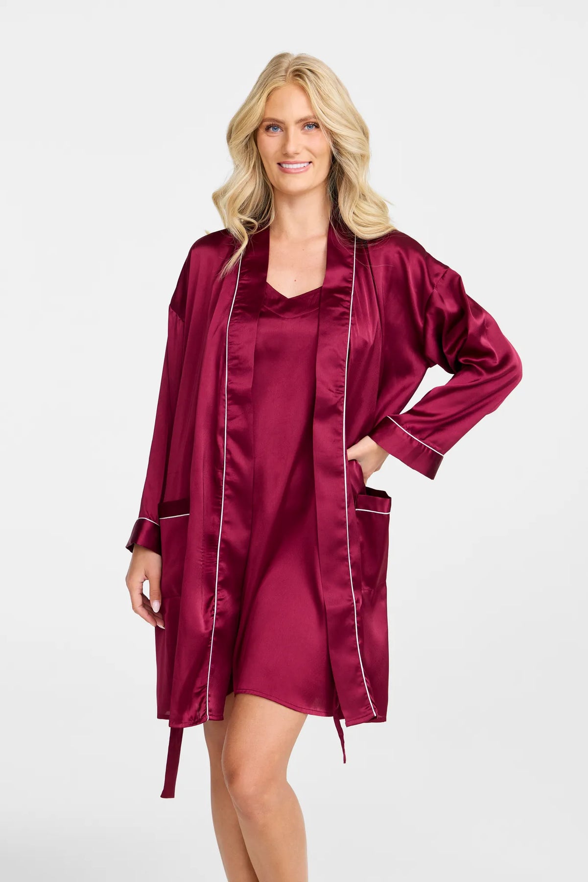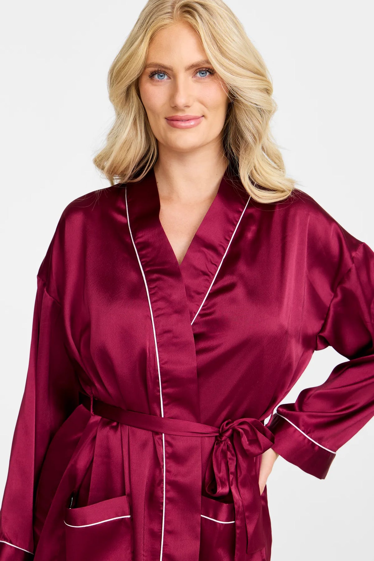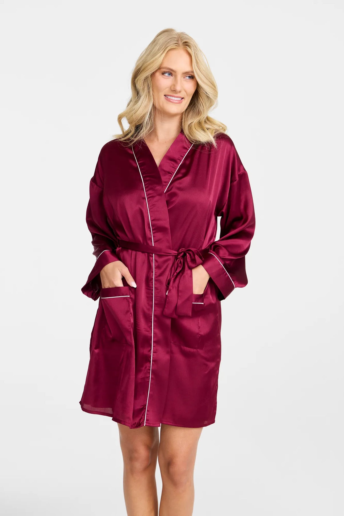 Elegant omlott-rock i polyestersatin som ger en lyxig och sofistikerad känsla. Utrustad med praktiska fickor för extra bekvämlighet och stil. Perfekt för hemmabruk eller att ha med på resan för en avslappnad och chic look.