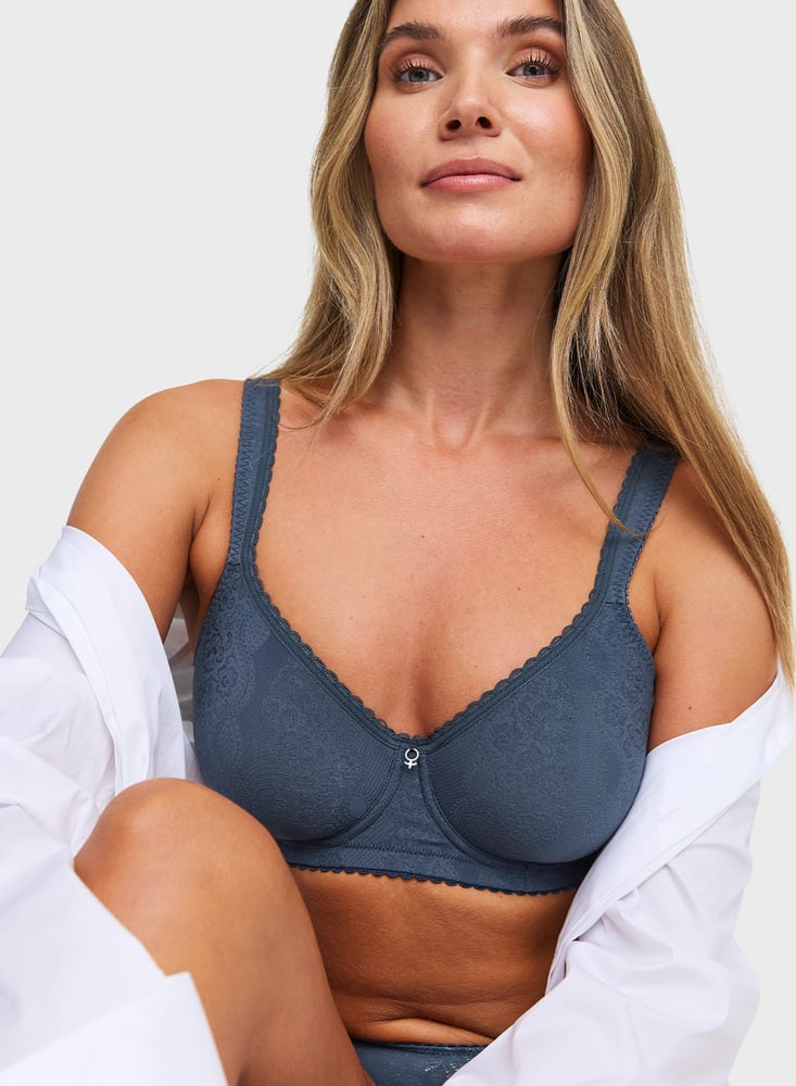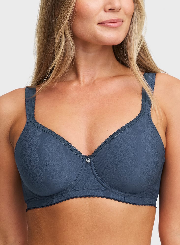 Lätt vadderad bh med mjuk båge. Ger en fin och naturlig form åt den mindre bysten. Tack vare den nätta vadderingen ger den även en fast och fin silhuett åt den större bysten. En riktig storsäljare i vår butik! Nu även i denna fina blå färg Misty Blue!