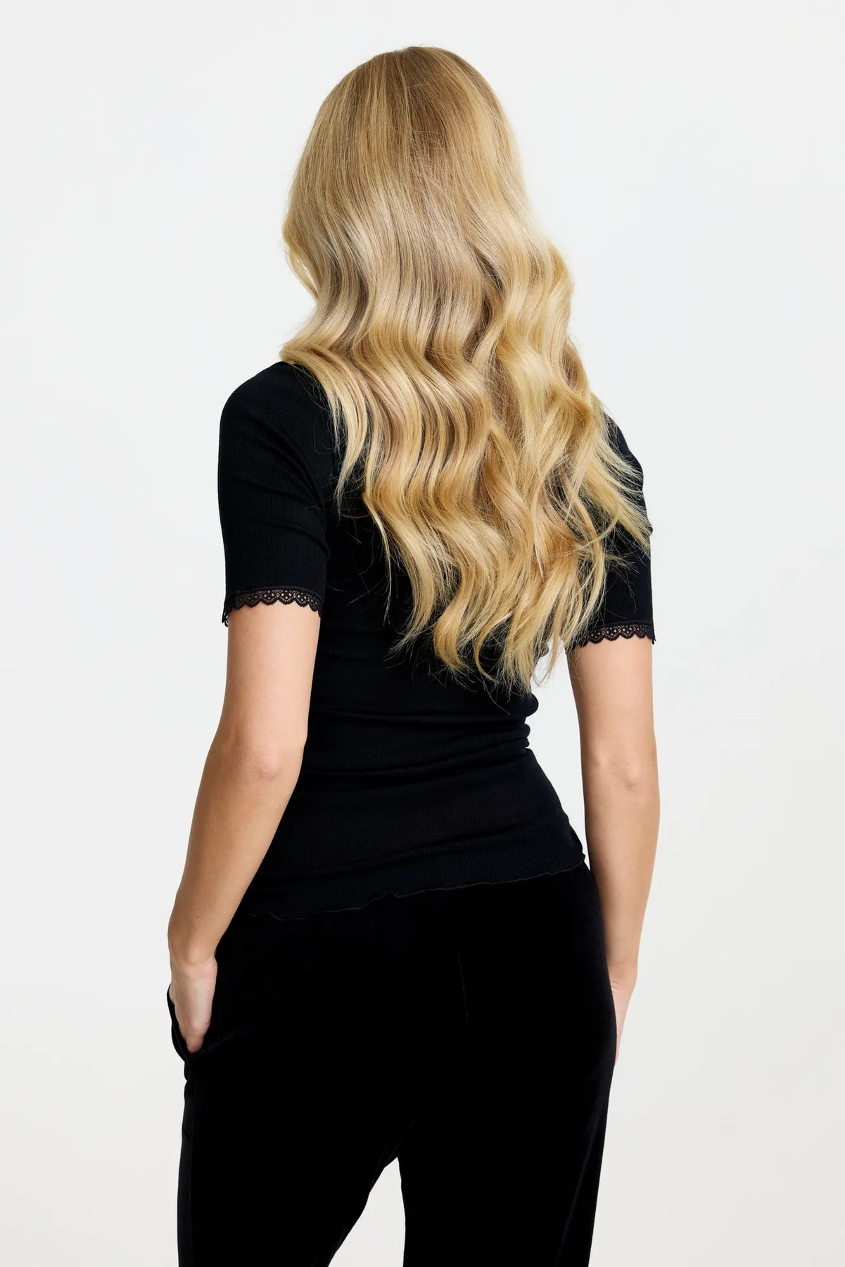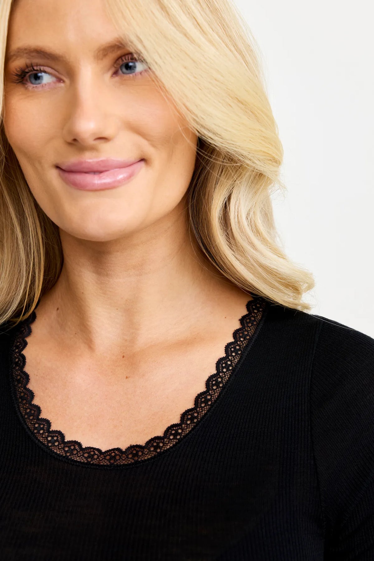 Denna kortärmade t-shirt är tillverkad i en blandning av extrafin merinoull och siden med en mjuk och följsam känsla. Merinoullen är naturligt temperaturreglerande och bidrar till god komfort. T-shirten har feminin spets i halsringningen samt vid ärmsluten. OBS! Det rekommenderas att gå upp en storlek för en mer bekväm passform.