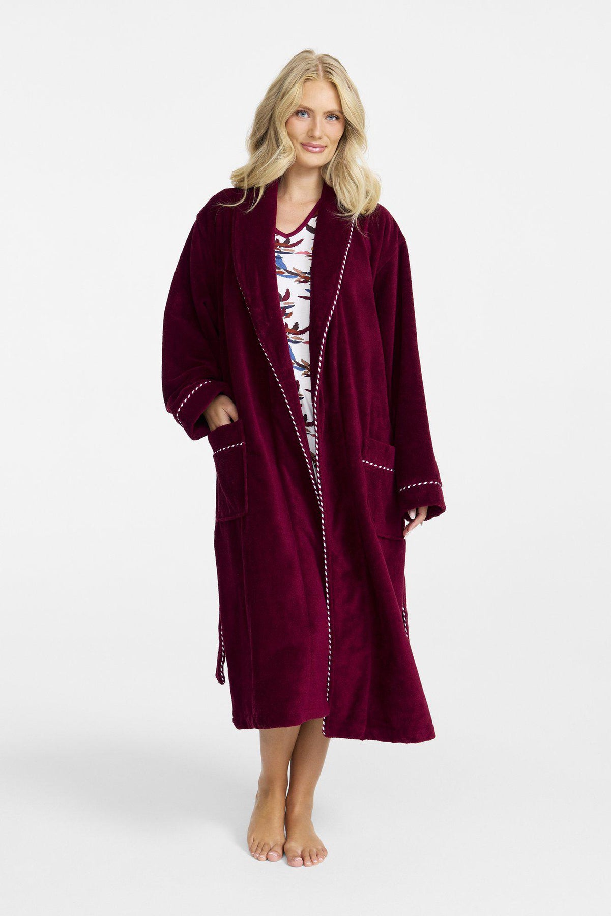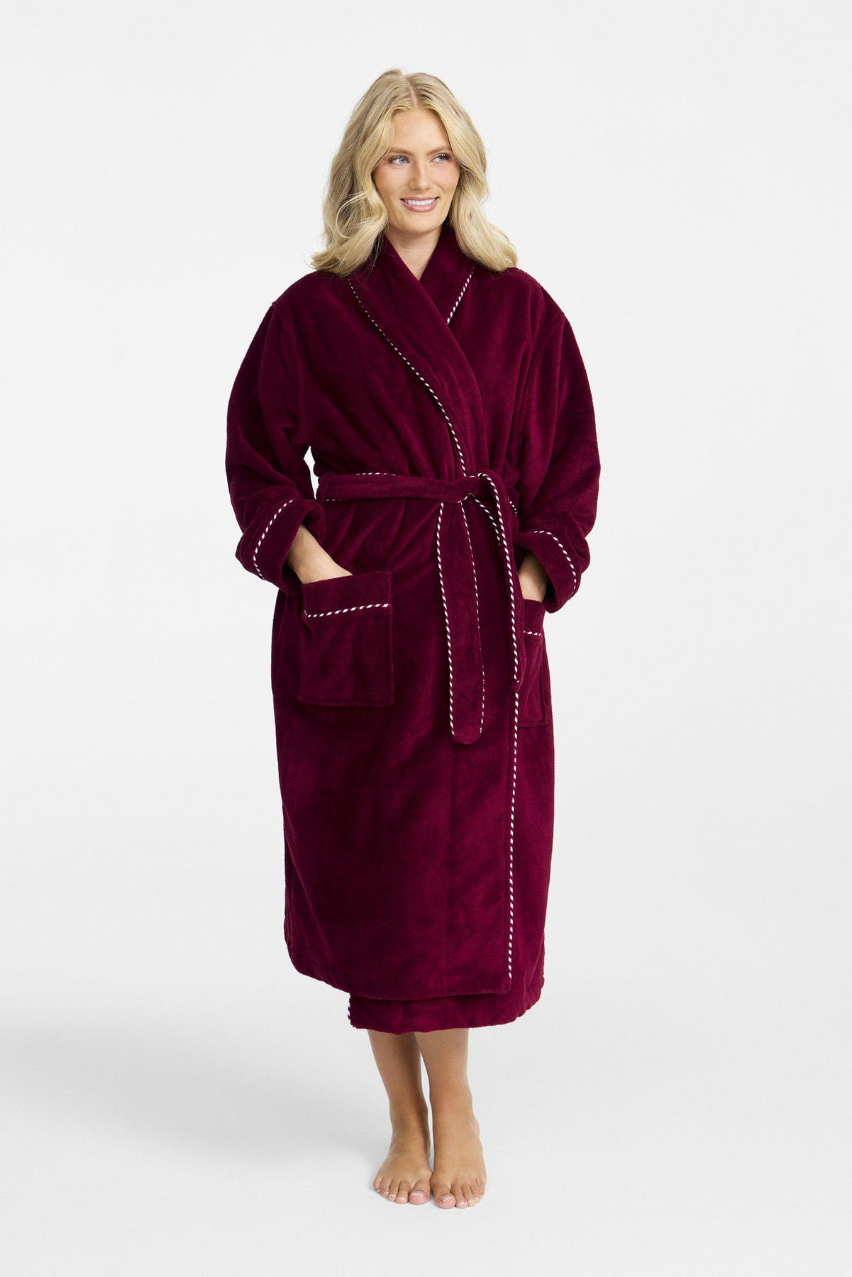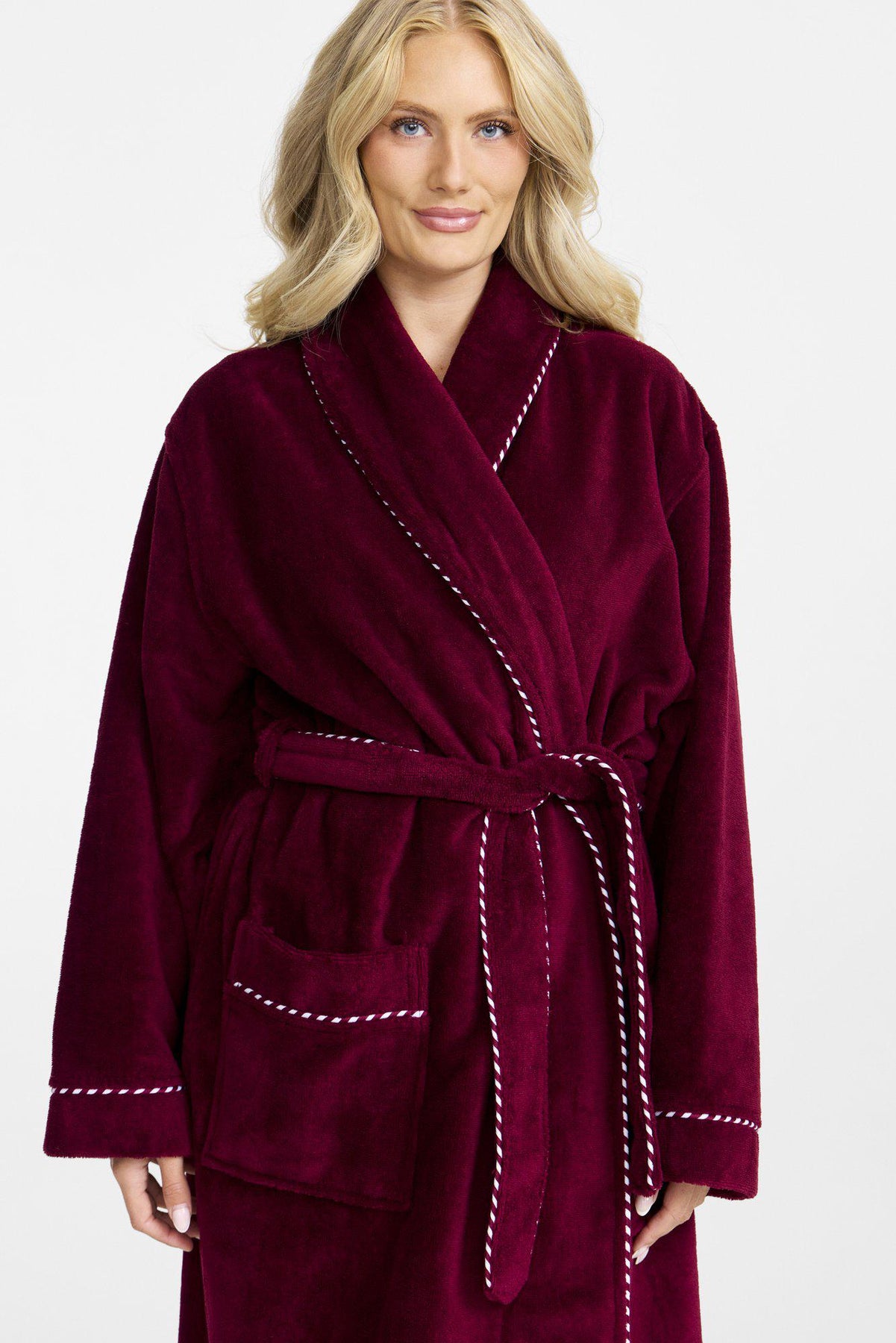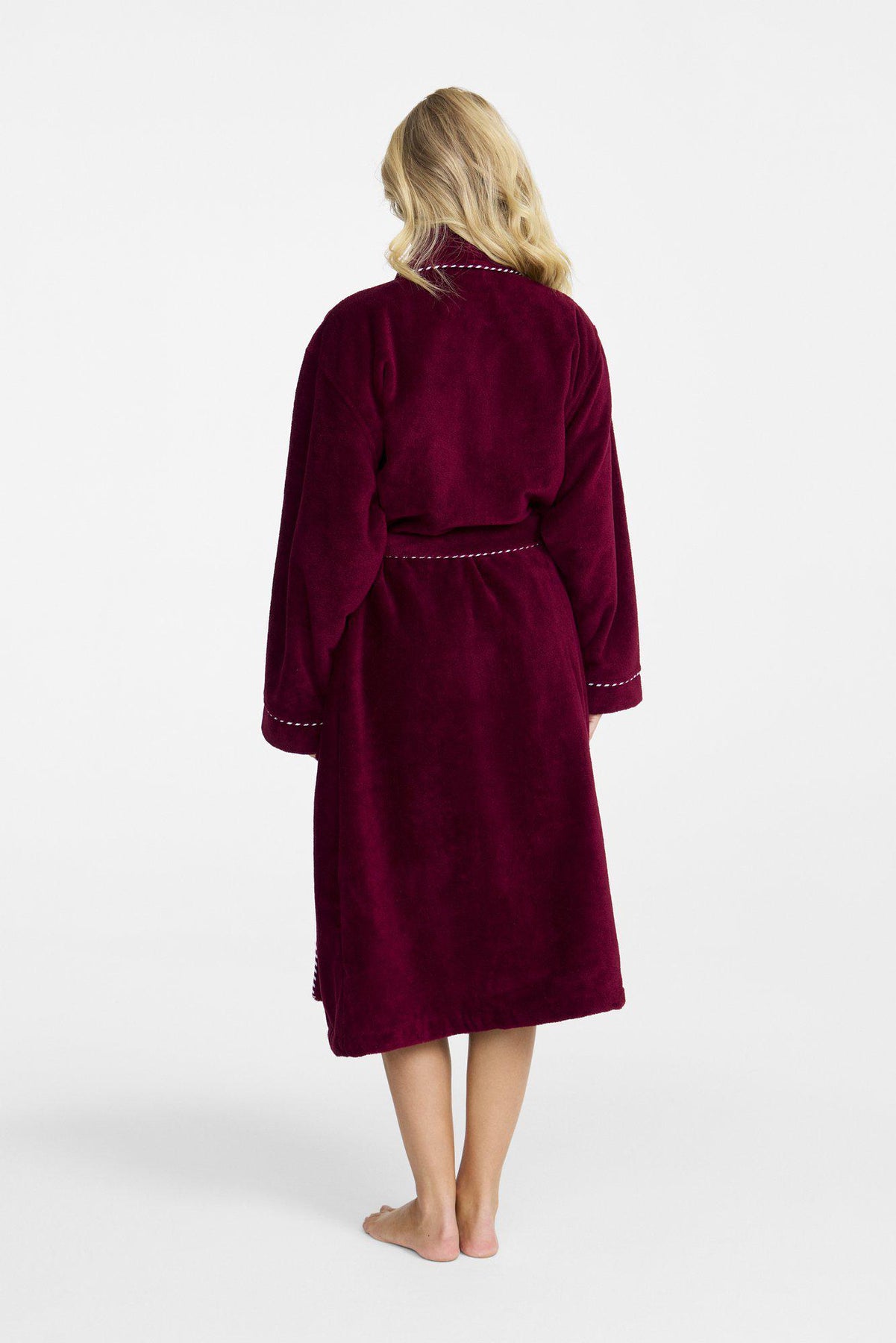 Denna rock i randig skuren frotté ger en känsla av lyx och bekvämlighet varje morgon. Den har en mjuk utsida och en absorberande insida, vilket gör den perfekt som både badrock och morgonrock. Designad med en mysig sjalkrage som ger extra värme och komfort runt nacken och axlarna, samt lyxiga vita randiga detaljer. Rocken är i unisexstorlekar.