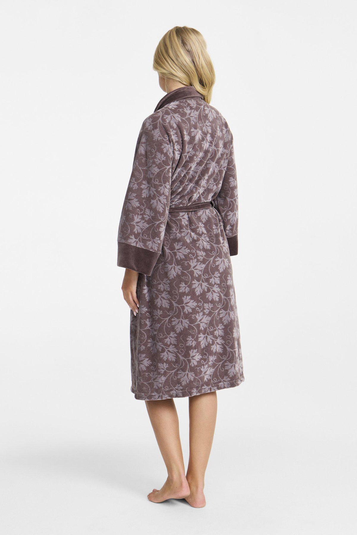 Elegant omlottrock i ton-i-ton jacquardvelour, designad med klassisk sjalkrage och muddar i enfärgad velour för en fin kontrast. Rocken har dessutom praktiska fickor i sidsömmarna, vilket gör den både stilfull och funktionell. Mjuk och omfamnande , vilket gör rocken till det perfekta valet för avkopplande stunder hemma.